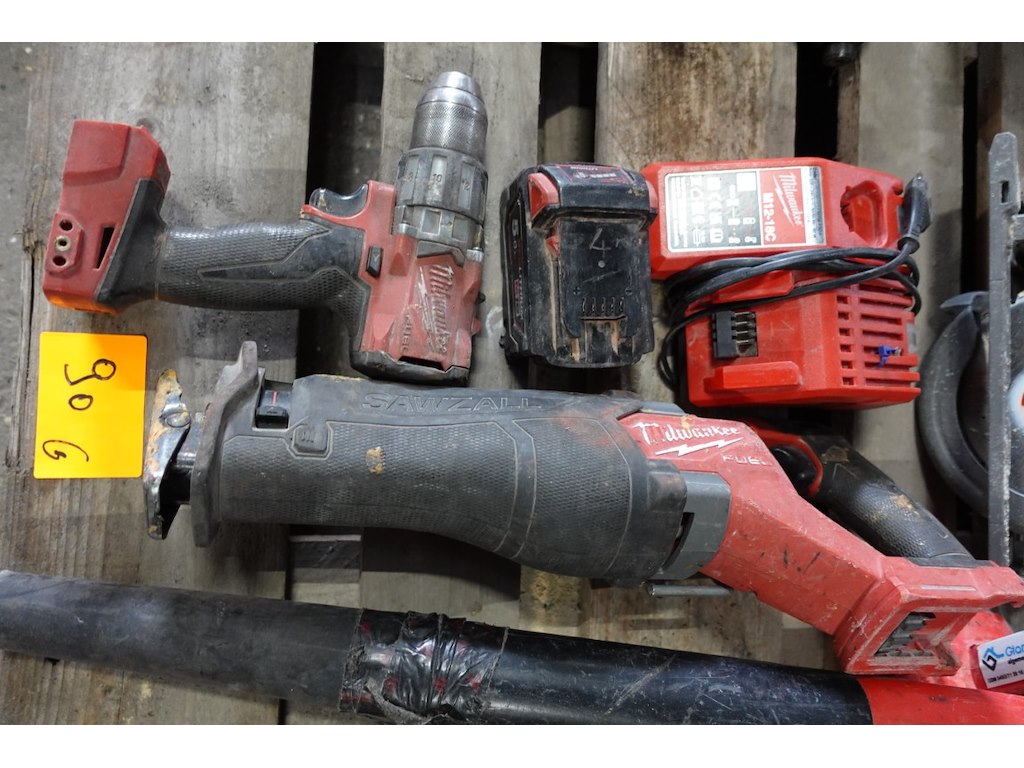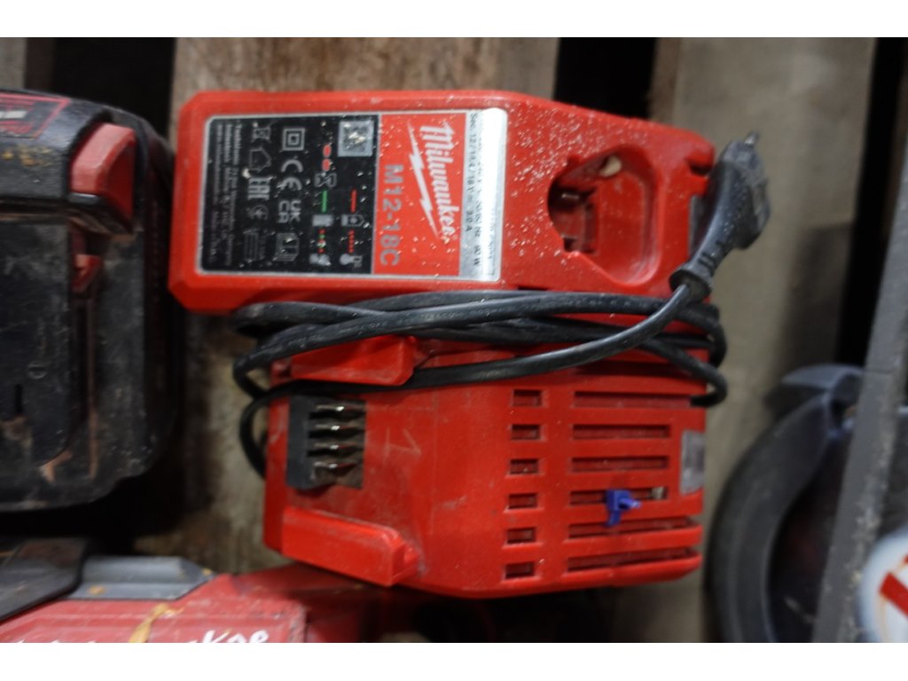 Vv accu cirkelzaag, accu blazer, accu reciperozaag, accu schroefboormachine, 2x accu & lader<br /> locatie: Stockage