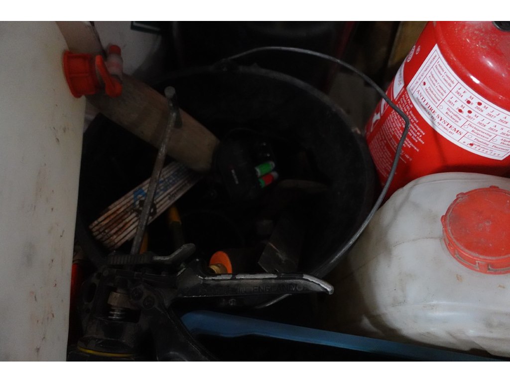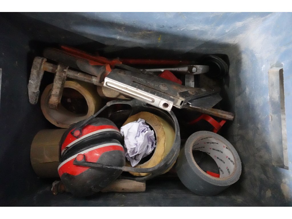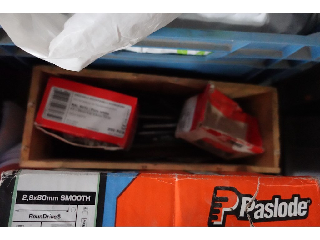 Oa: spanriemen, nagels, ijzerwaren, helmen,...<br /> locatie: Stockage