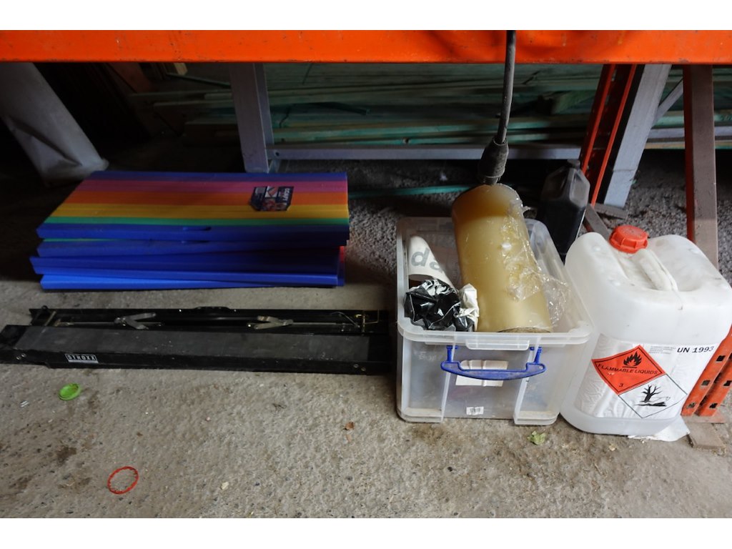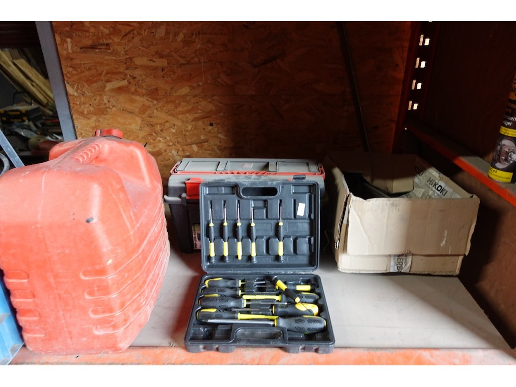 Oa: startkabels, schieter, bidons, grijpbakken met werkmateriaal<br /> locatie: Stockage