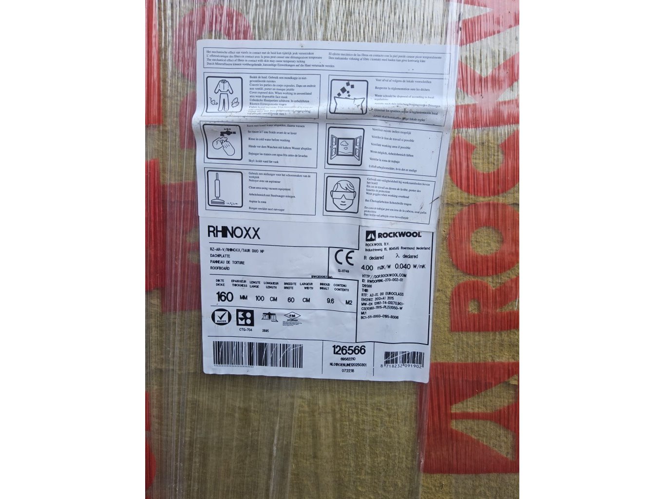 Rockwool. In gesloten verpakking. Dikte=160mm. L=1000mm. B=600mm. Plm 9,6m2/pak.