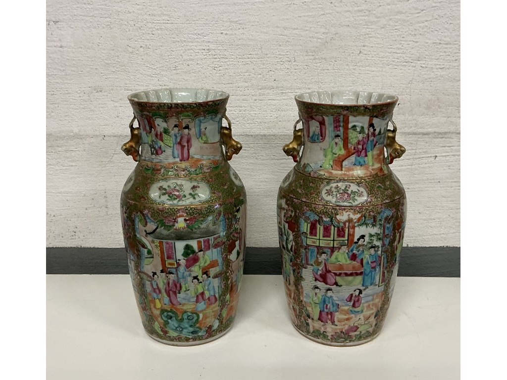 2 x chinese vazen met goudkleurige handvaten in dierenfiguur