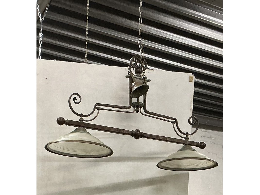 Lamp-bibliotheek/pool-snookertafel, 2 armen met opaline glazen kappen