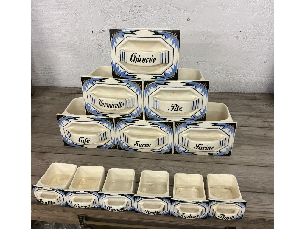 Art deco : 12 porseleine voorraad en kruidenpotten potten, 6x groot en 6x klein