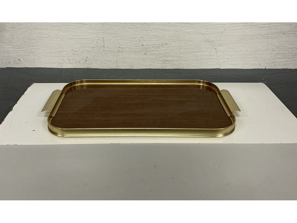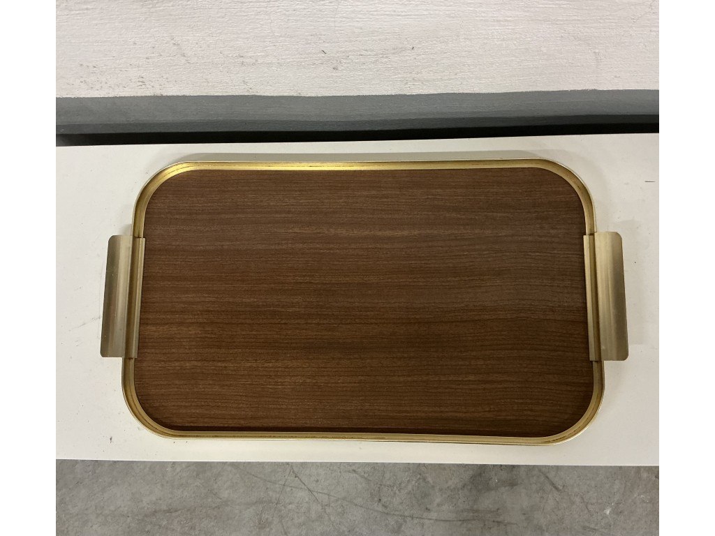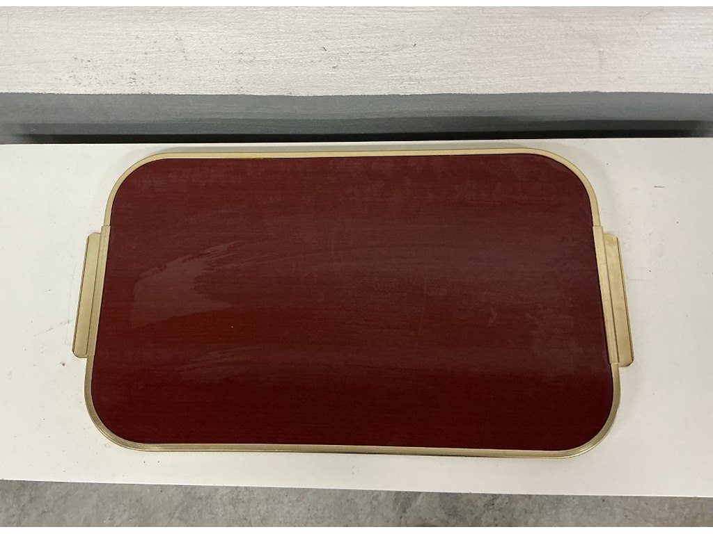 Vintage dienblad met koperkleurige kader - achterkand in roodkleurig