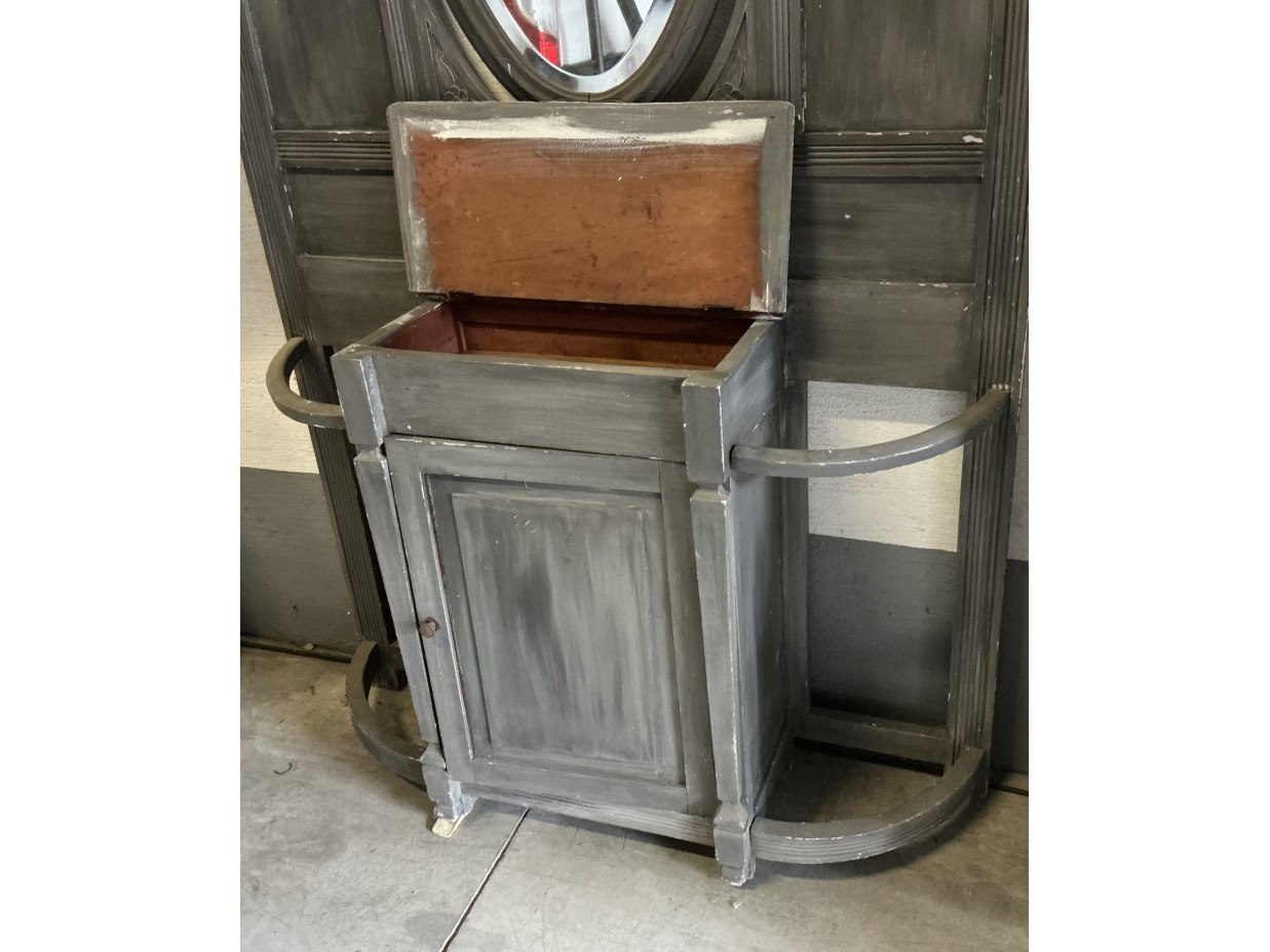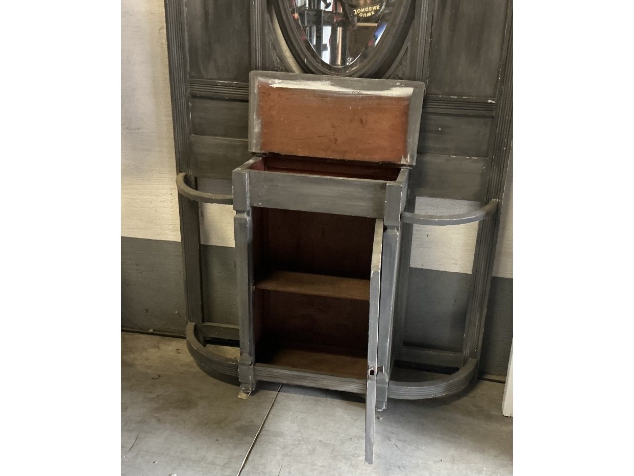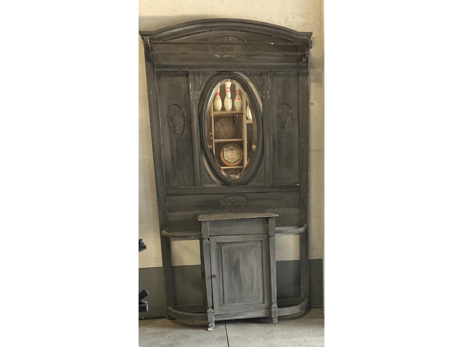 Hall meubel in hout, geslepen ovale spiegel +vooraan kleinbakje en kastje