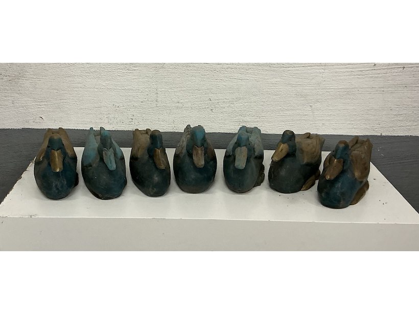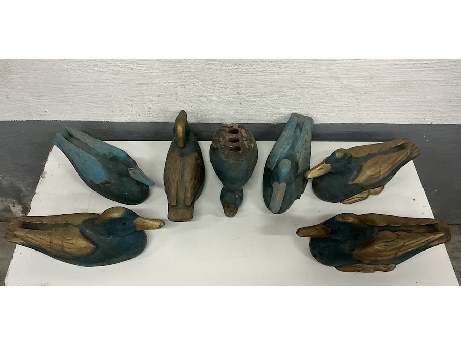 7 x lokeenden in hout, kleur goud/blauw - 1 lot