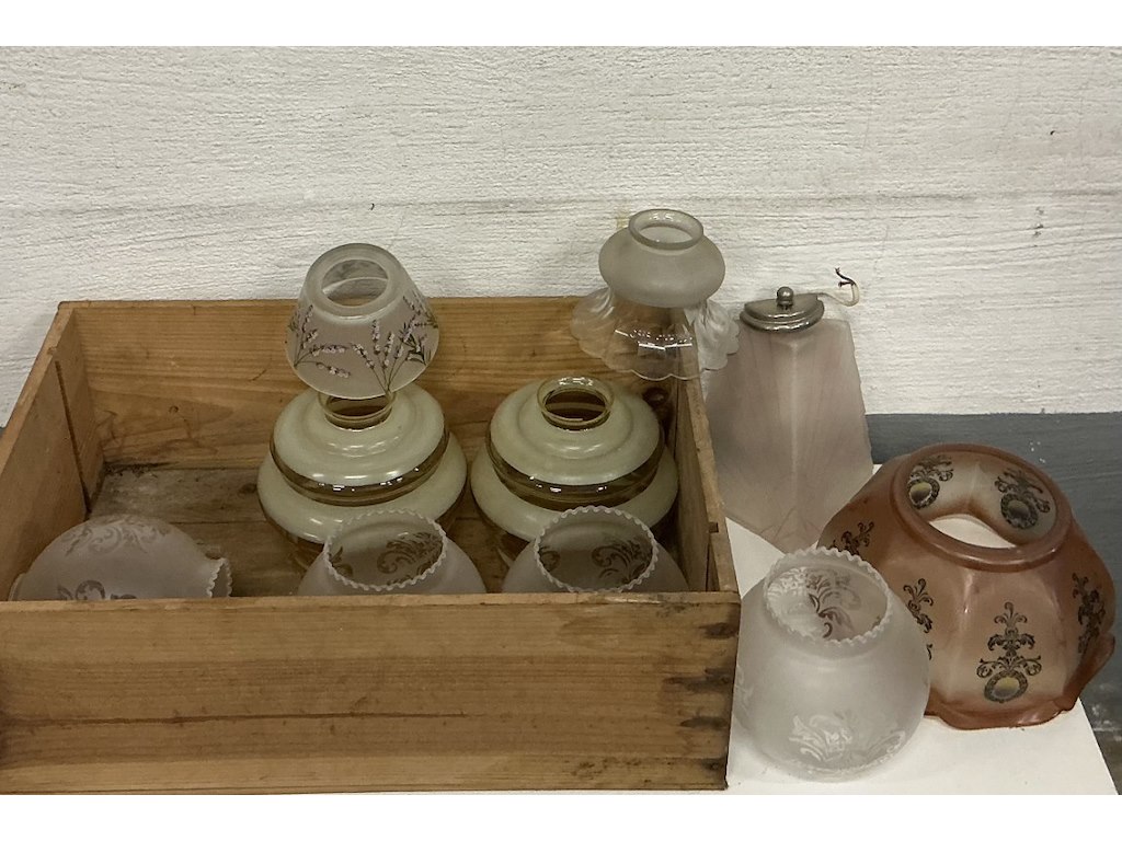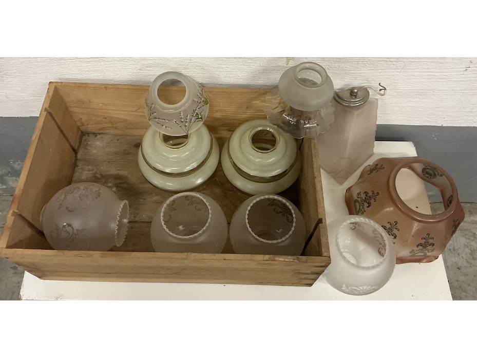 10 x oude glazen lampenkapjes, verschillende modellen - 1 lot