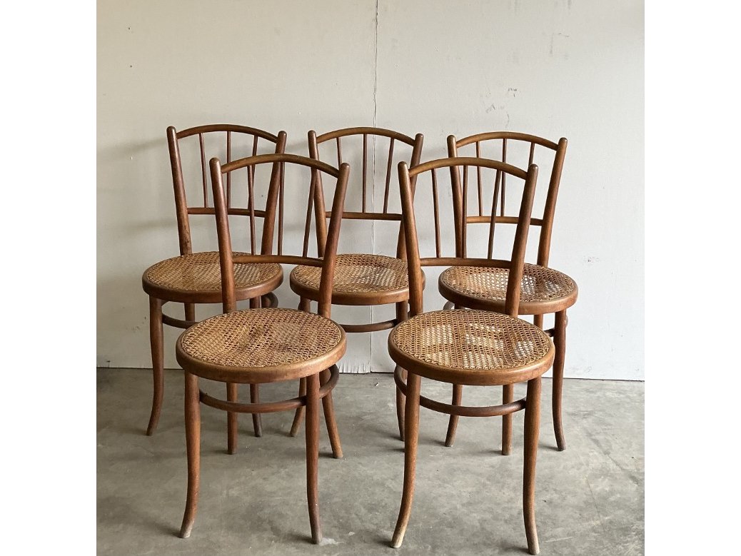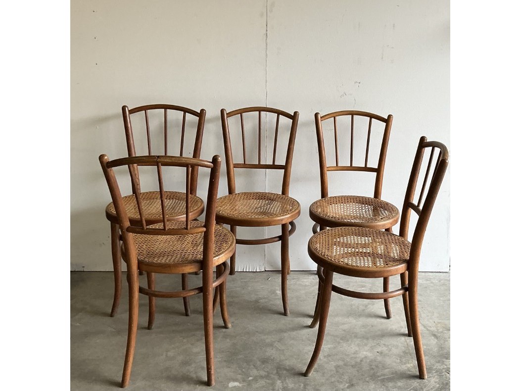 5 x oude, houten "thonet" stoelen met rieten zitting