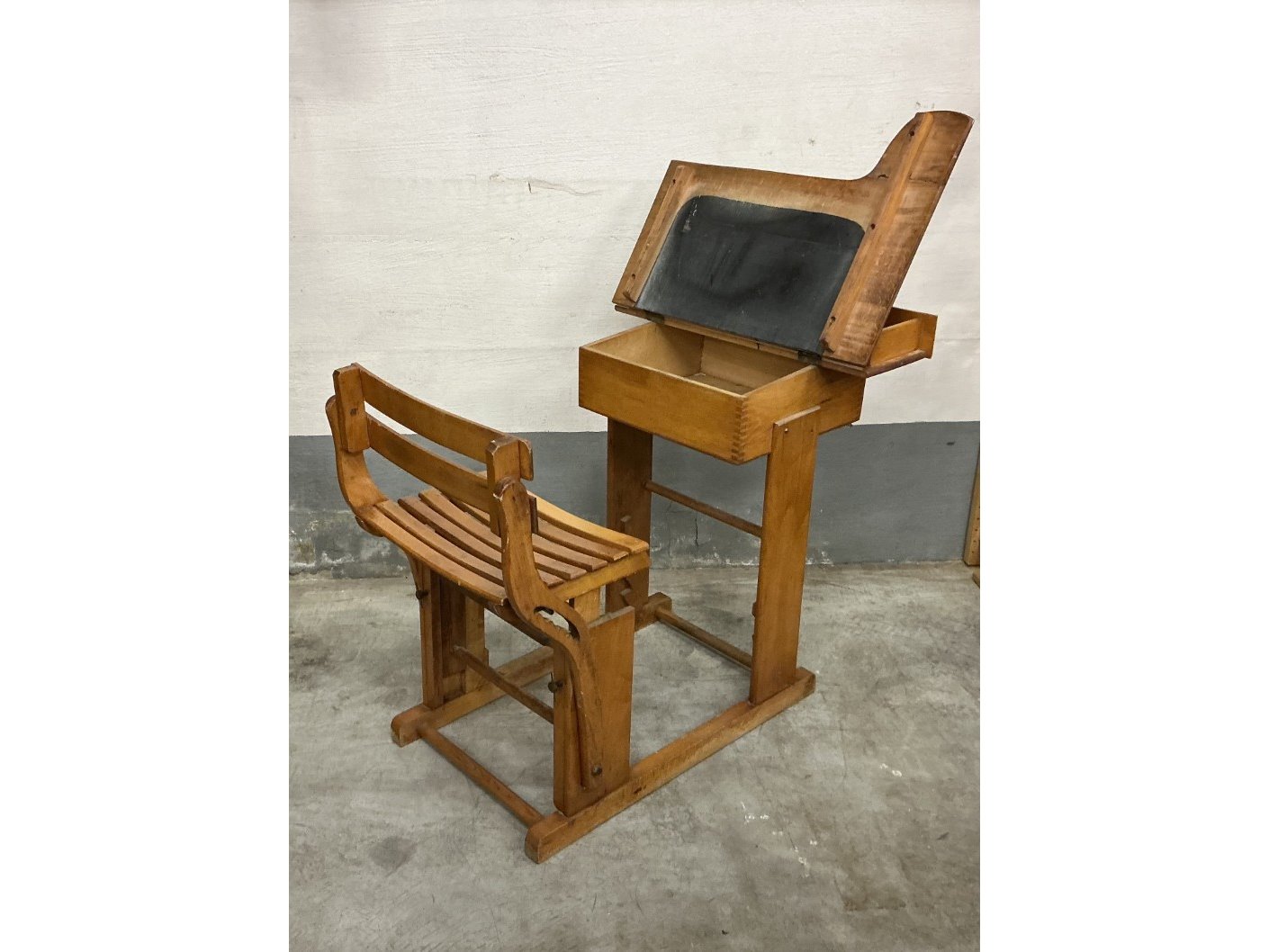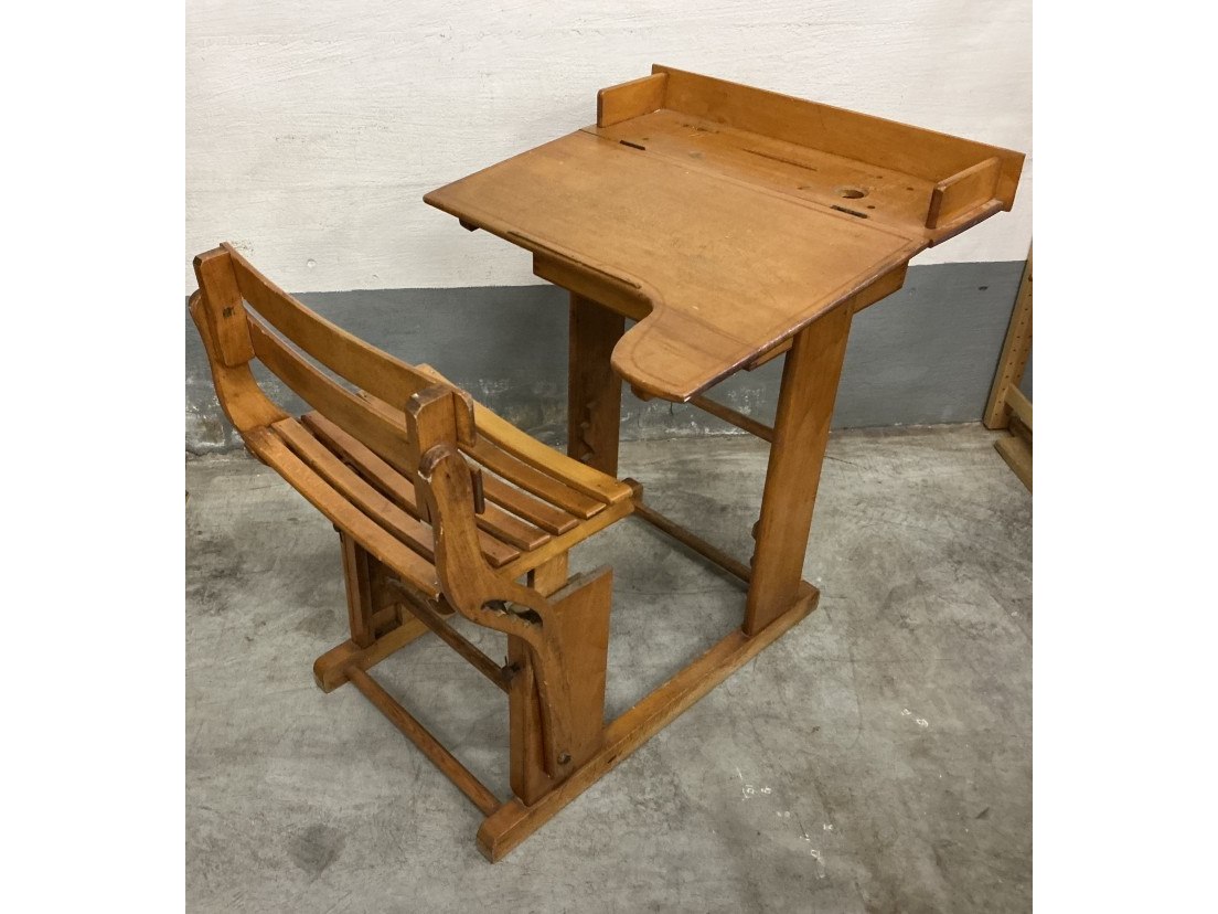 Houten vintage kinderlessenaar met zitje ( torck)