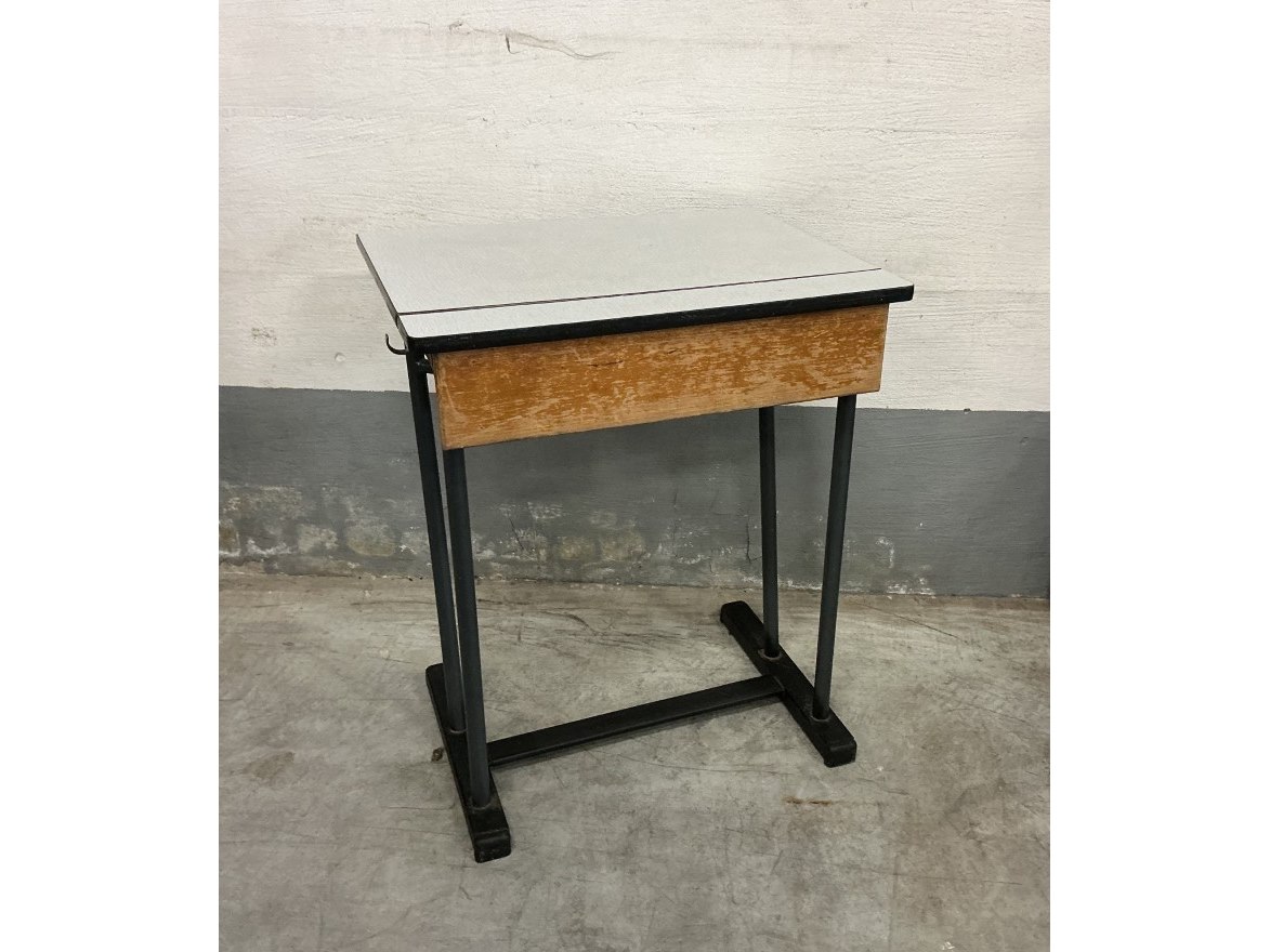 Vintage schoollessenaar, licht grijs formica, zwart ijzeren onderstel