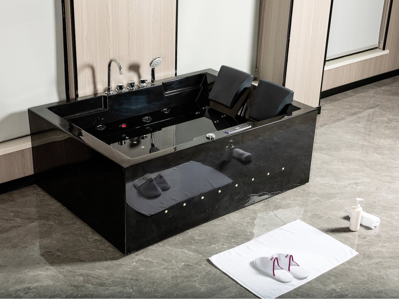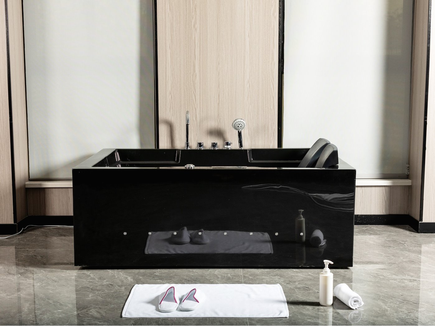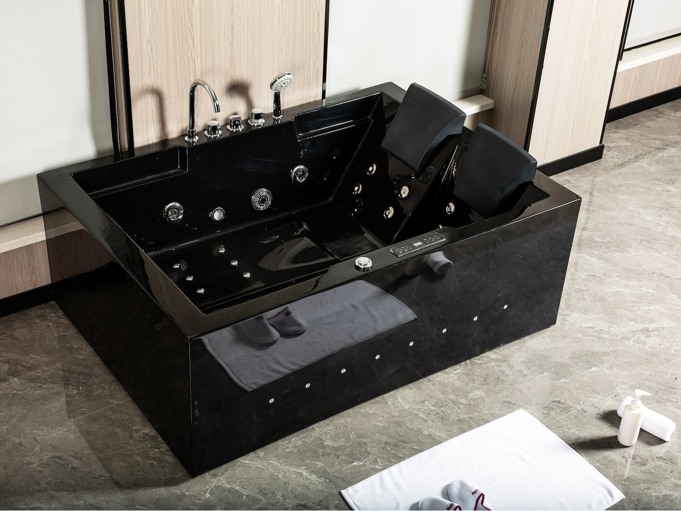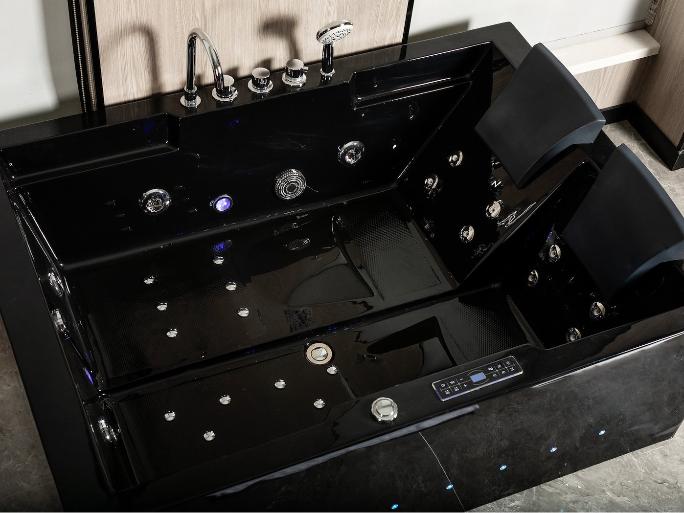 2-Persoons massage bad. Type Kleur ZWART. Rechtse opstelling. Afm.ca. 1700x1200x65
