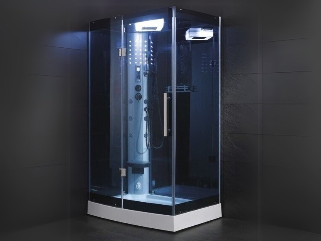 Stoomcabine rechthoekig - zwarte cabine met witte bodemplaat 120x90x215 cm (Linkse opstelling)