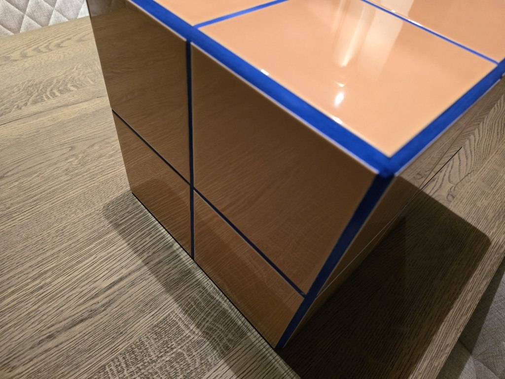 Design tegeltafel handmade 31x31x31H oranje met blauwe voeg
