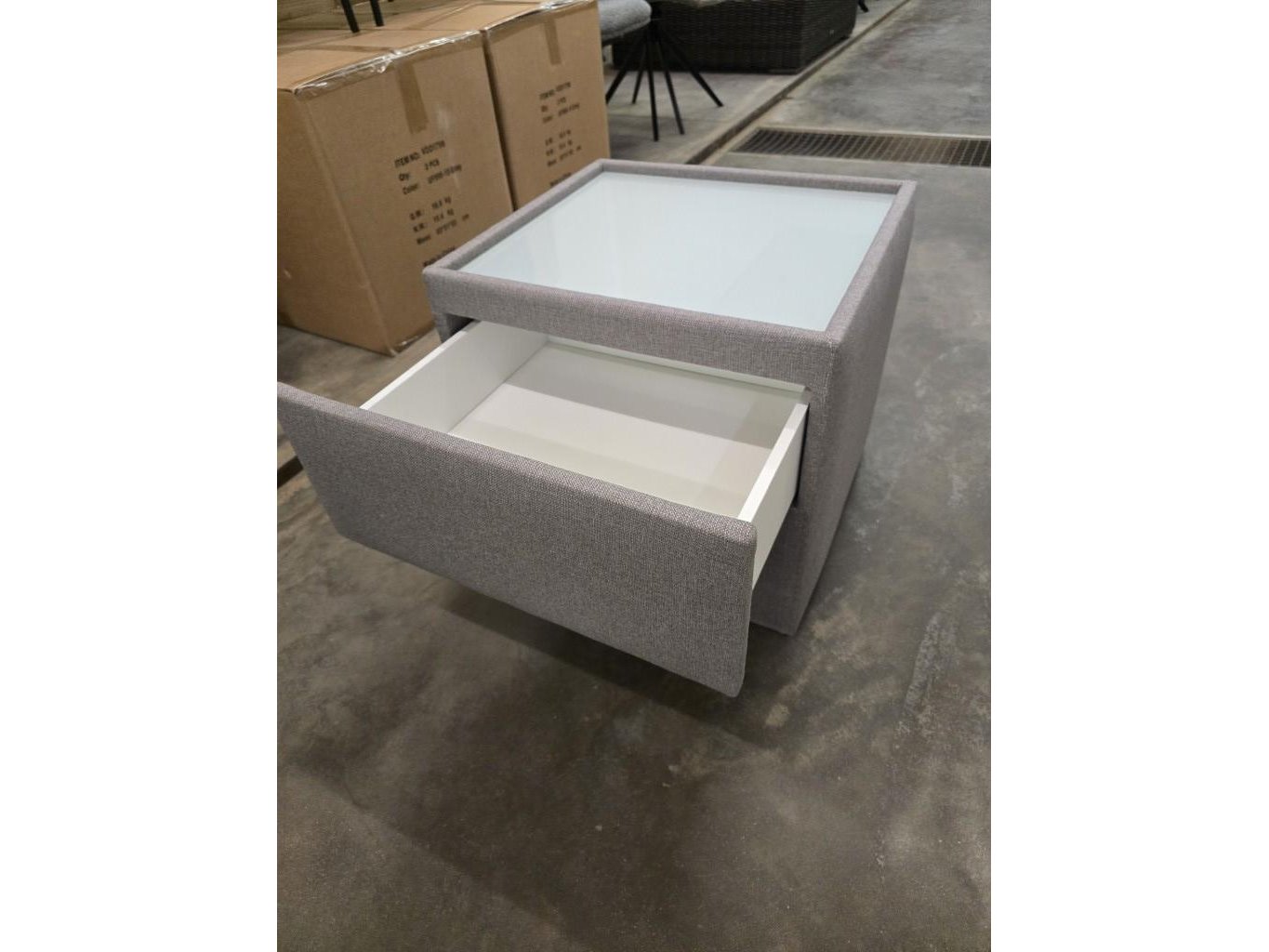 Nachtkastje in stof met lade en glasblad 50x50x46H