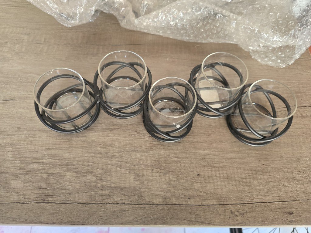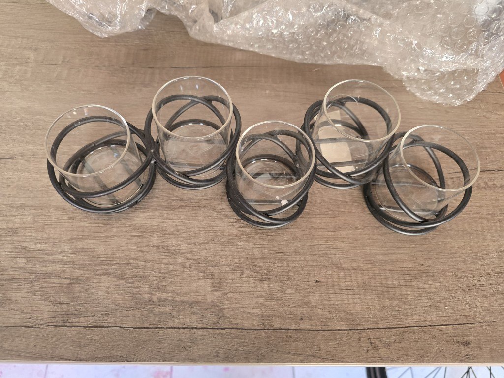 Nieuw - metal met 5 glaasjes - 35cm breed - 3 stuks