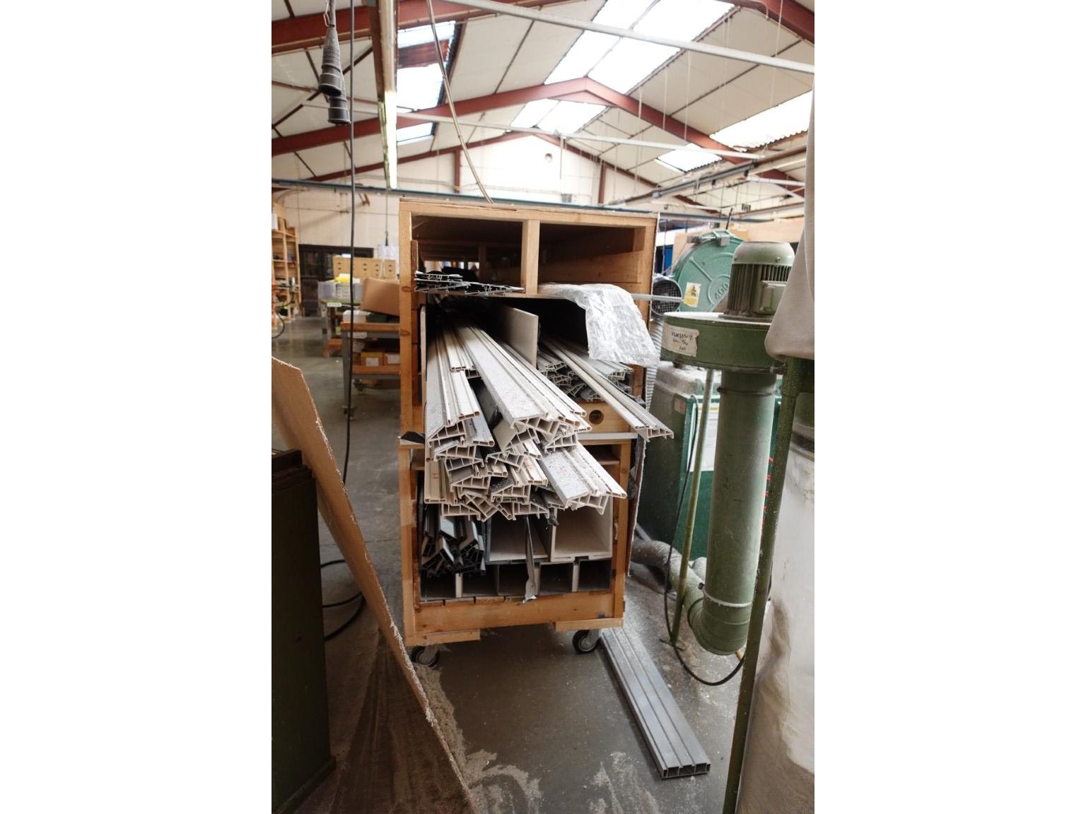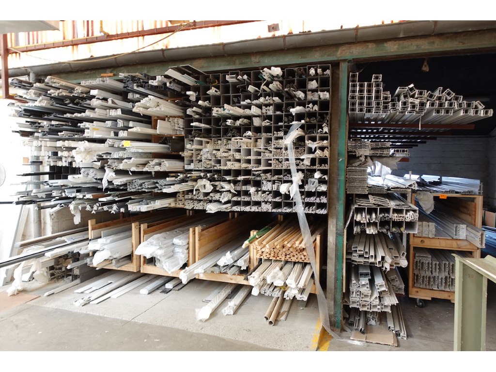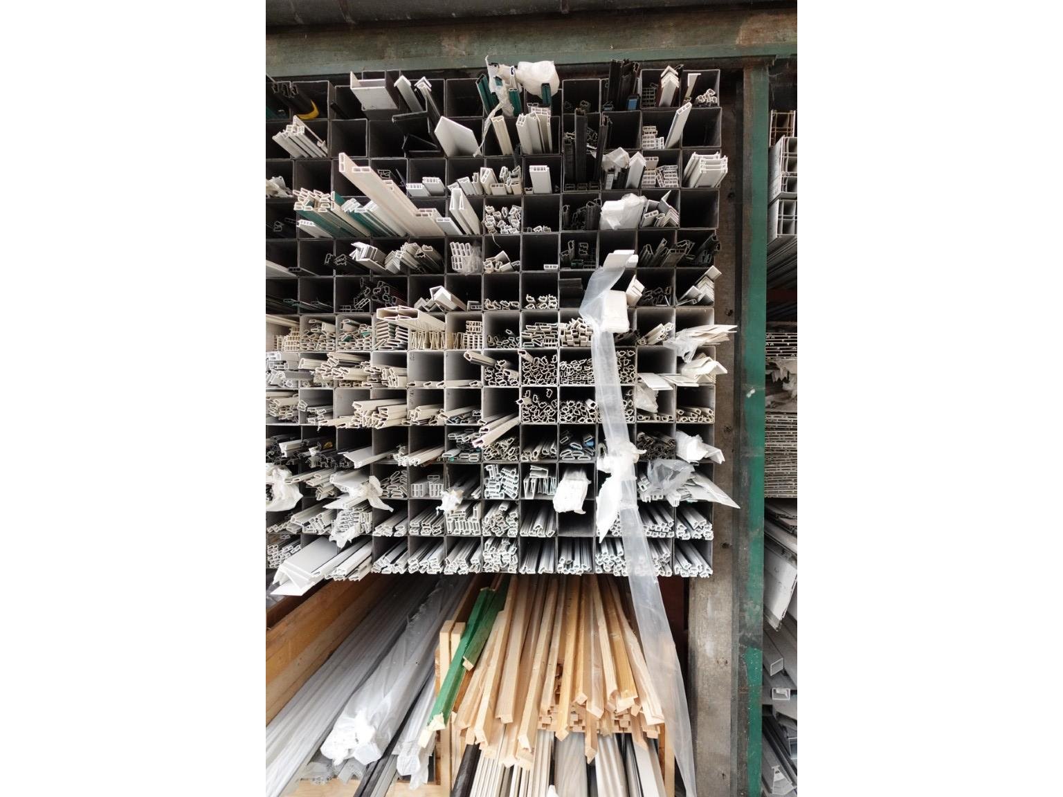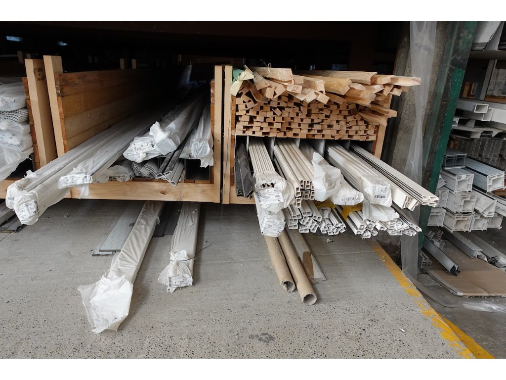 Plm 1000 stuks diverse glaslatten/profielen, inclusief houten profielbokken met oa: rolluikonderdelen