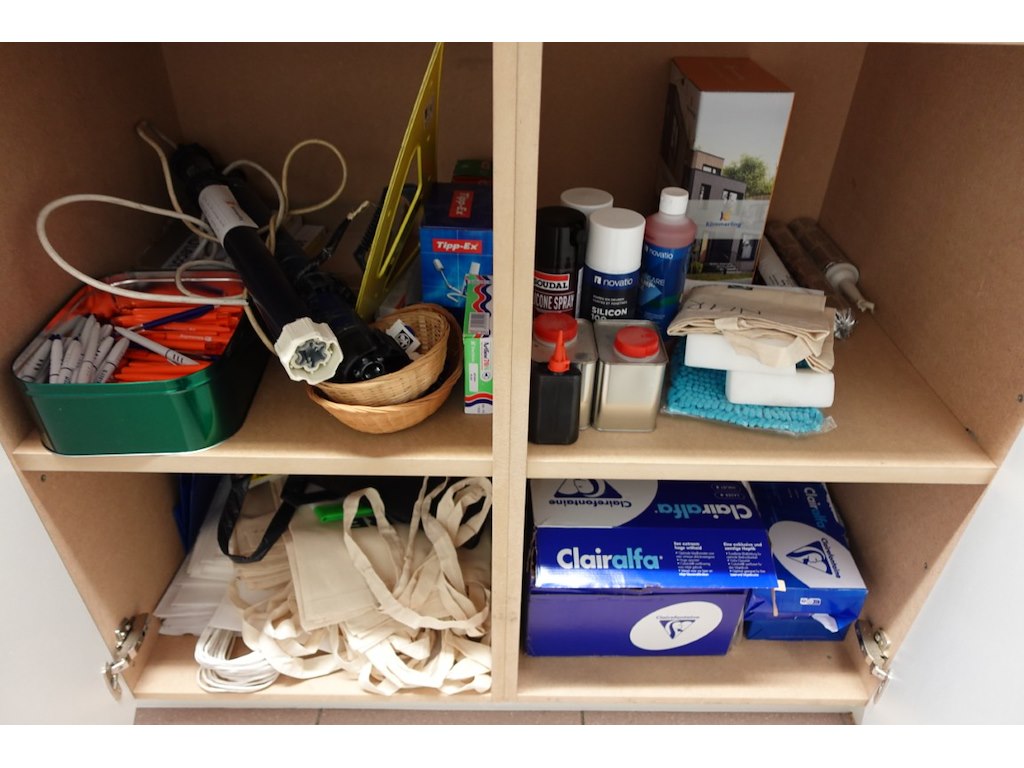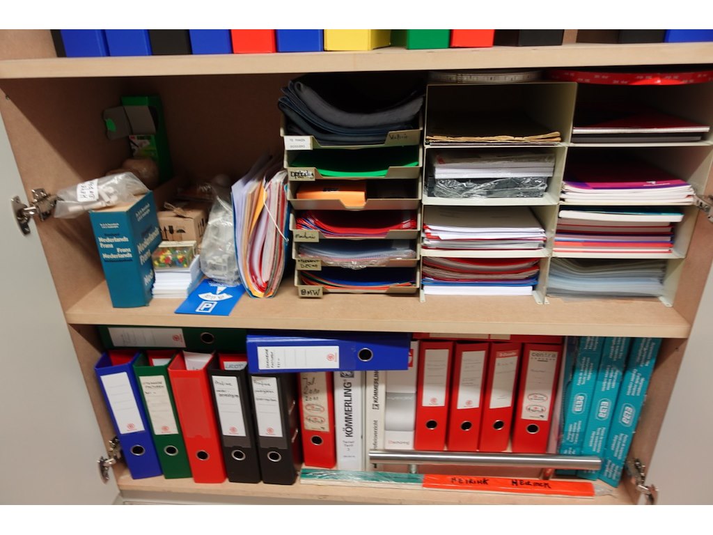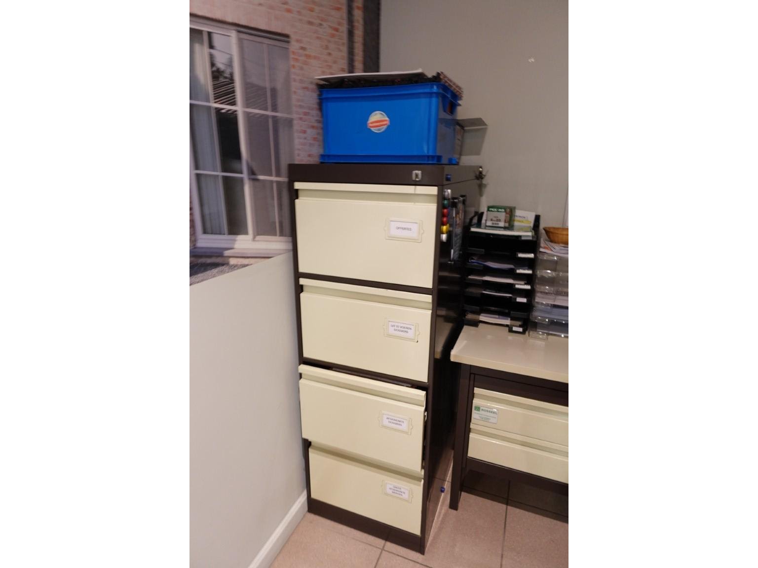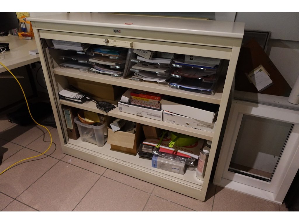 Omvat alle meubilair en inhoud kasten (metalen meubels, kasten, kapstok,...)