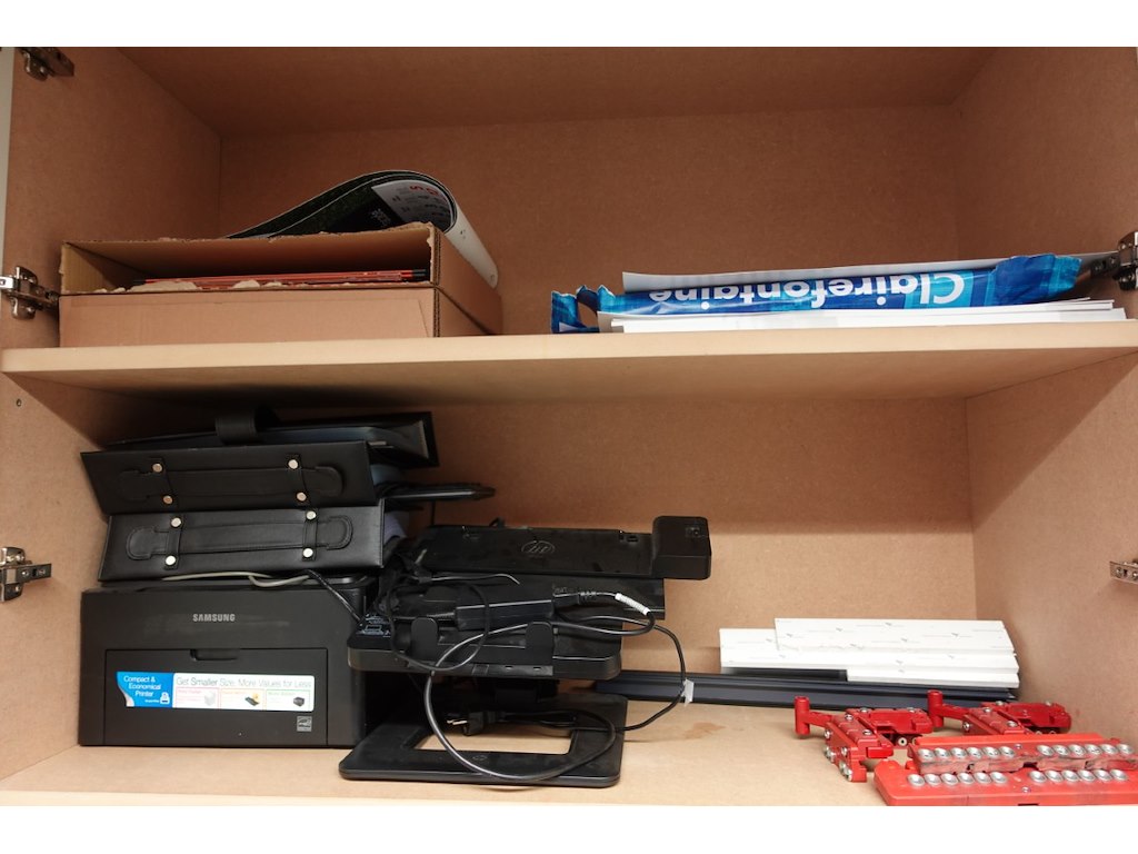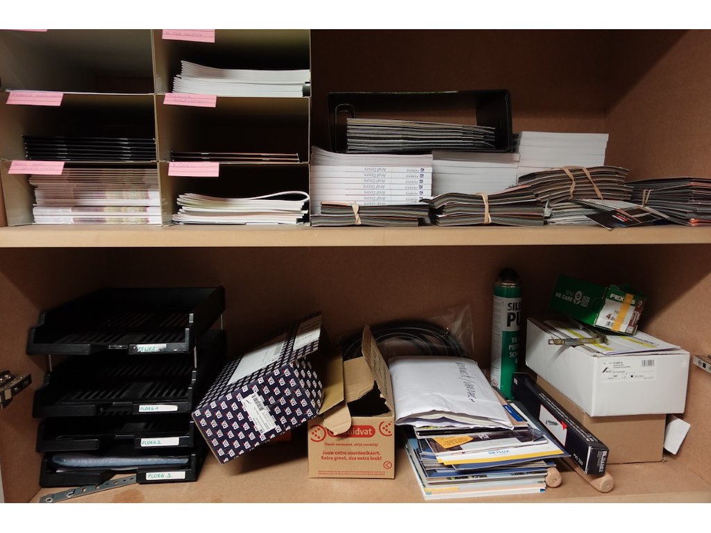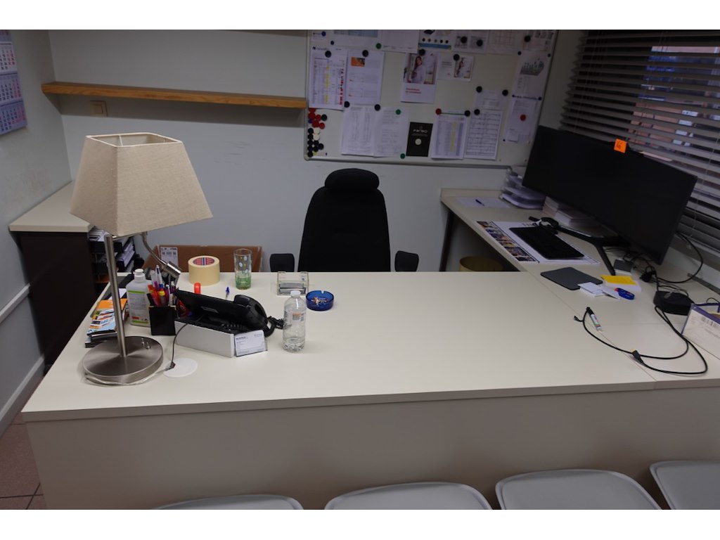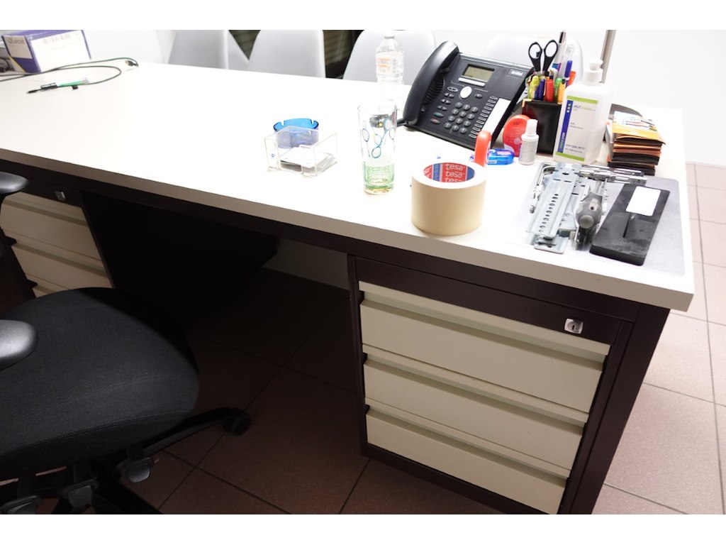 Omvat alle meubilair en inhoud kasten (metalen meubels, kasten, kapstok,...)