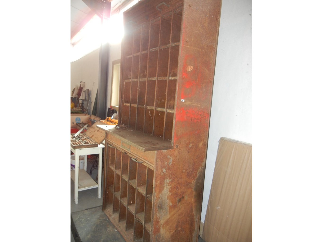 Antieke metalen postkast met koperbeslag