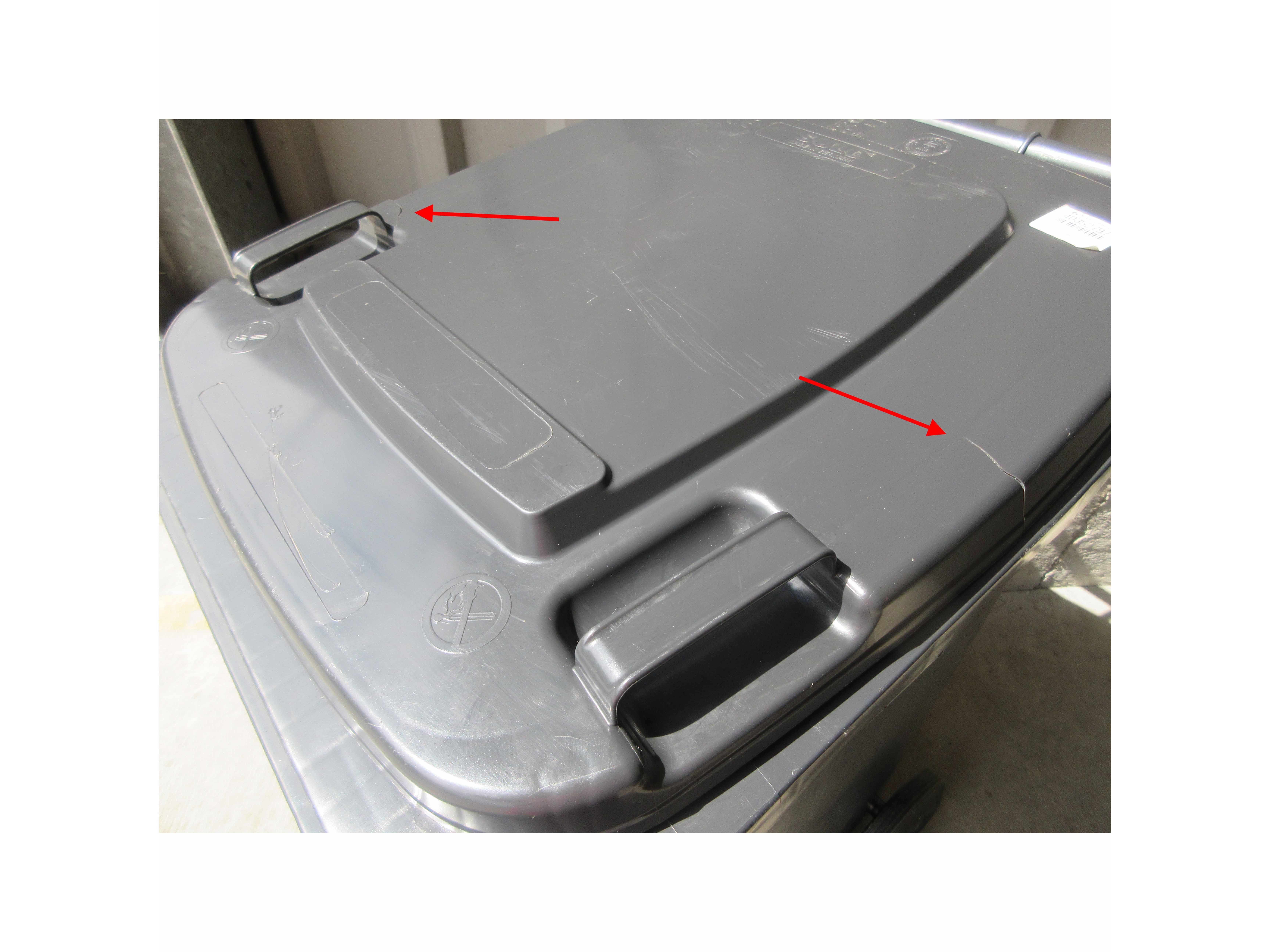 Set van 2x afvalcontainer 240l grijs beschadigd aan deksel!