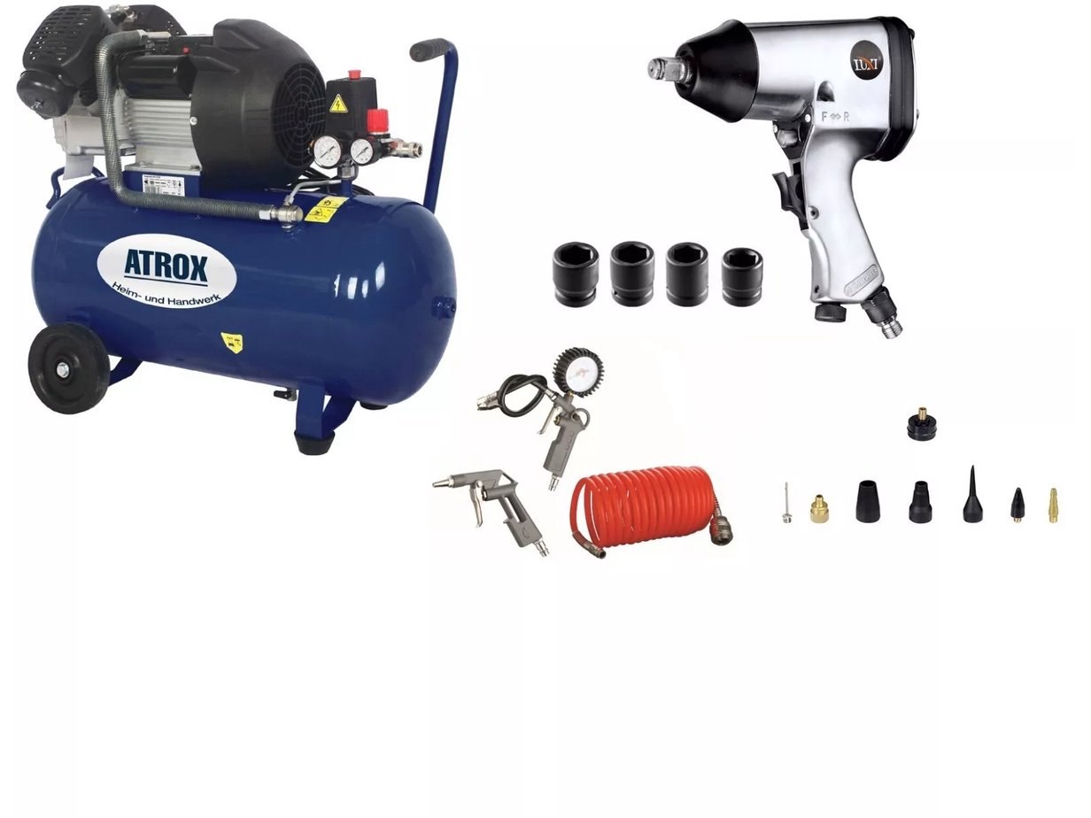 Overstock - ongebruikt in originele doos - Atrox AY676 Dubbelcilinder-compressorset inclusief slagmoersleutel en accessoires