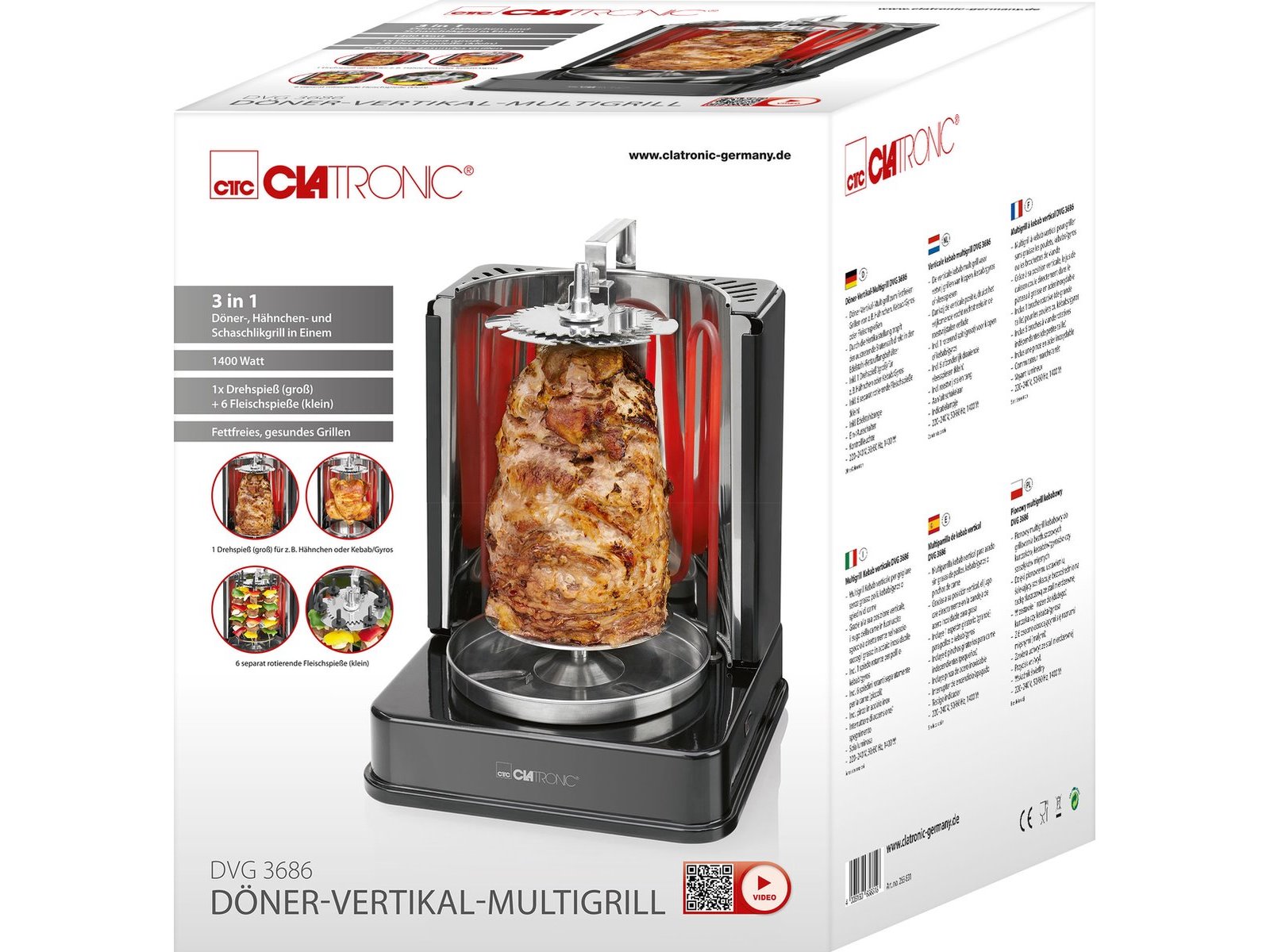 Clatronic dvg 3686 - verticale multi grill - gyrosgrill - kebabgrill