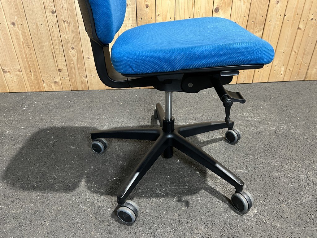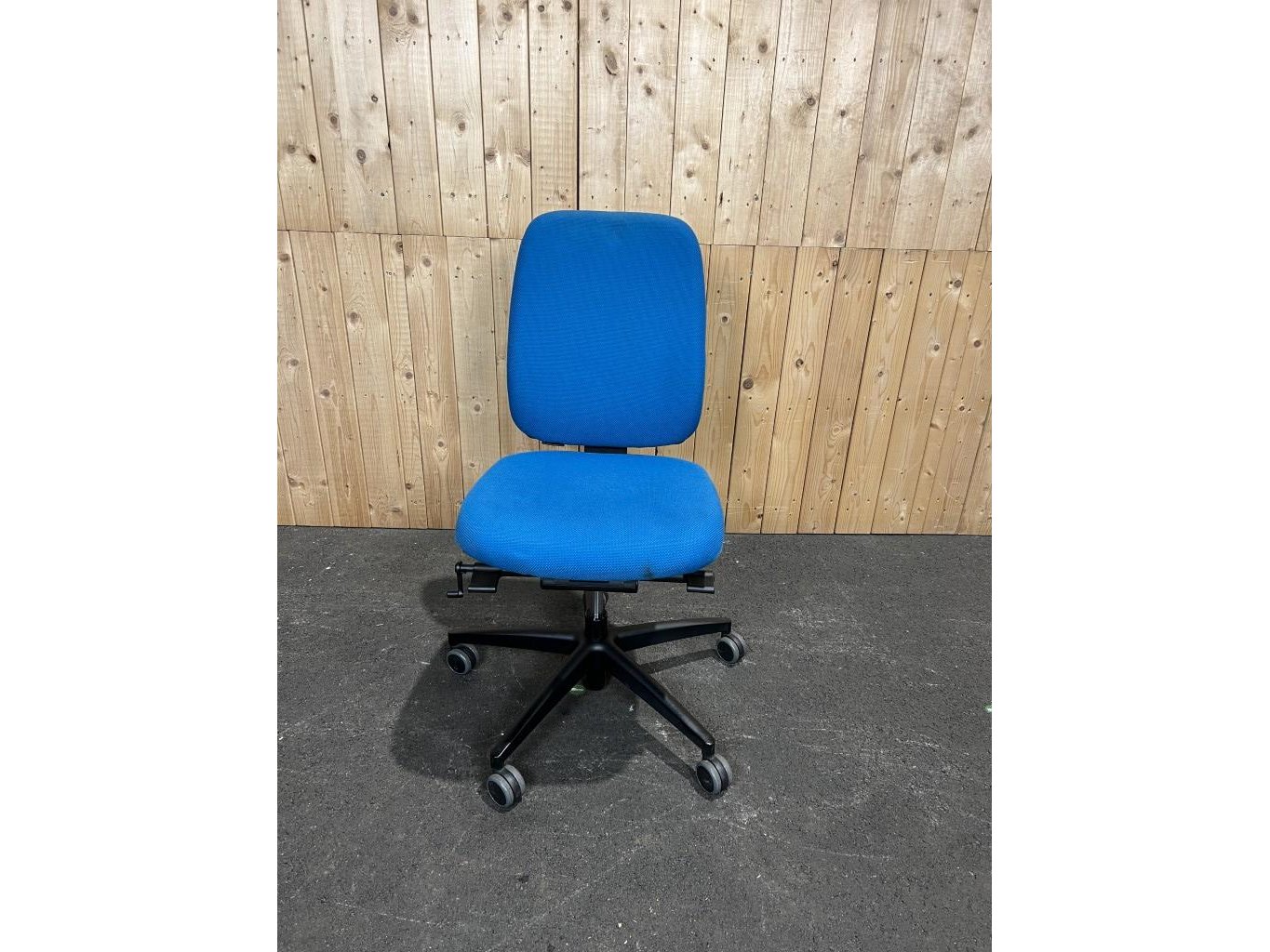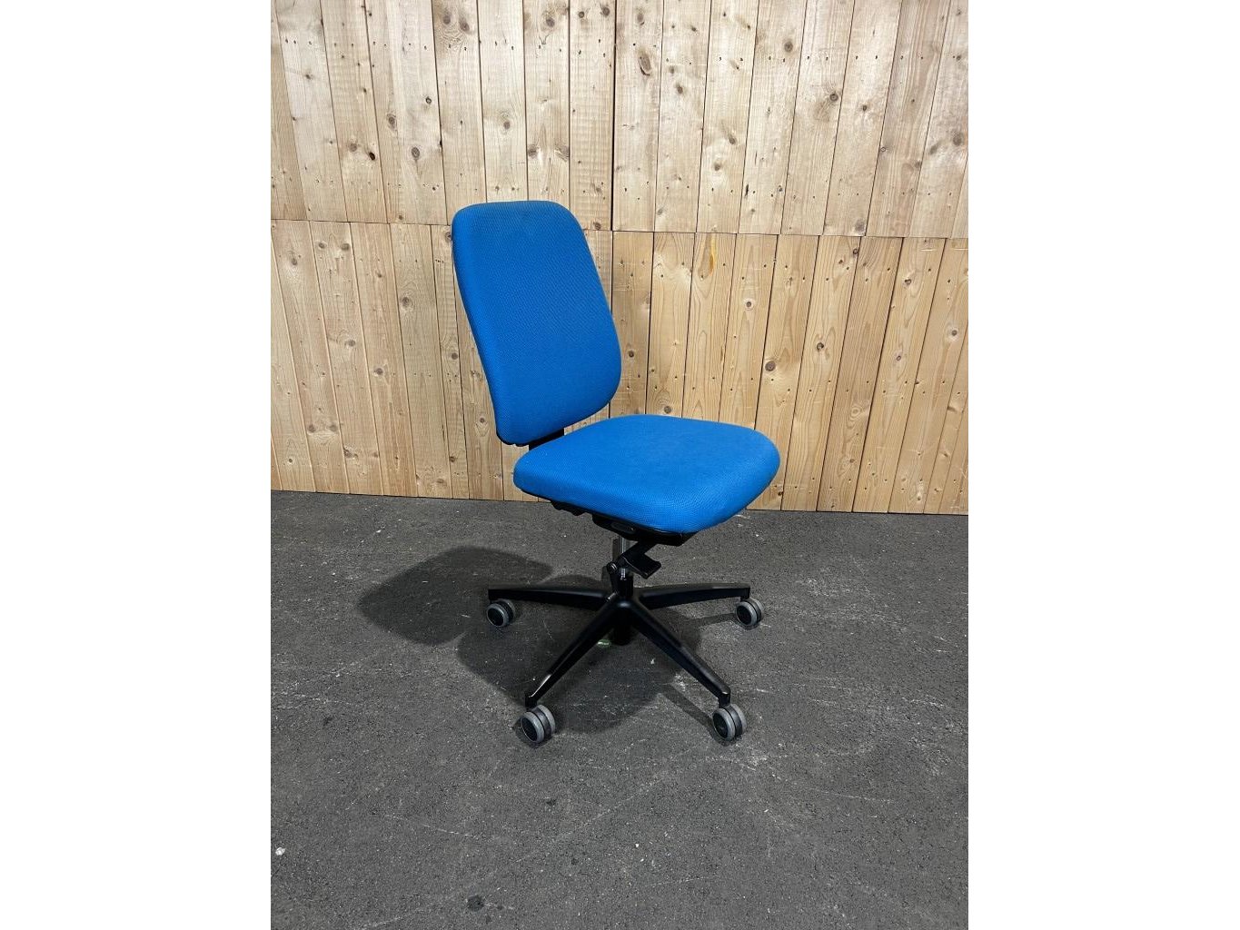 1x BEDIMO Bureaustoel - Blauw Stof, metalen voetkruis met wielen, zonder armleuningen, correcte staat