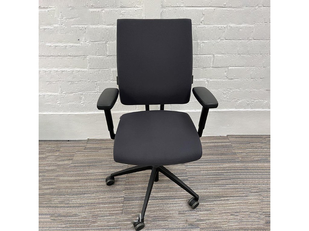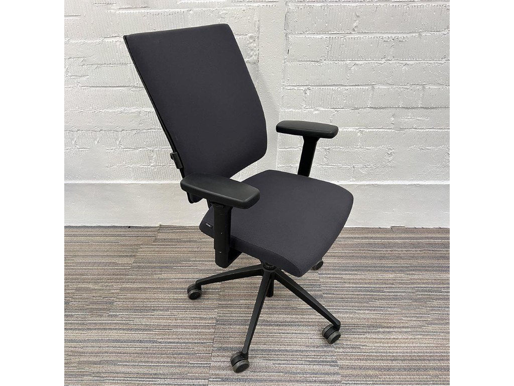 1x BRUNNER Bureaustoel - Zwart Stof, zwart kunststof voetkruis met wielen, krassen op rug