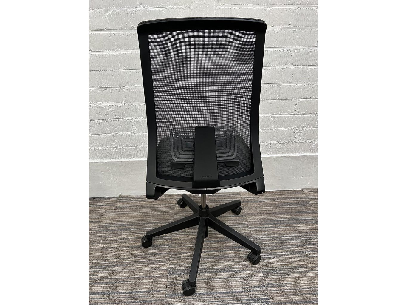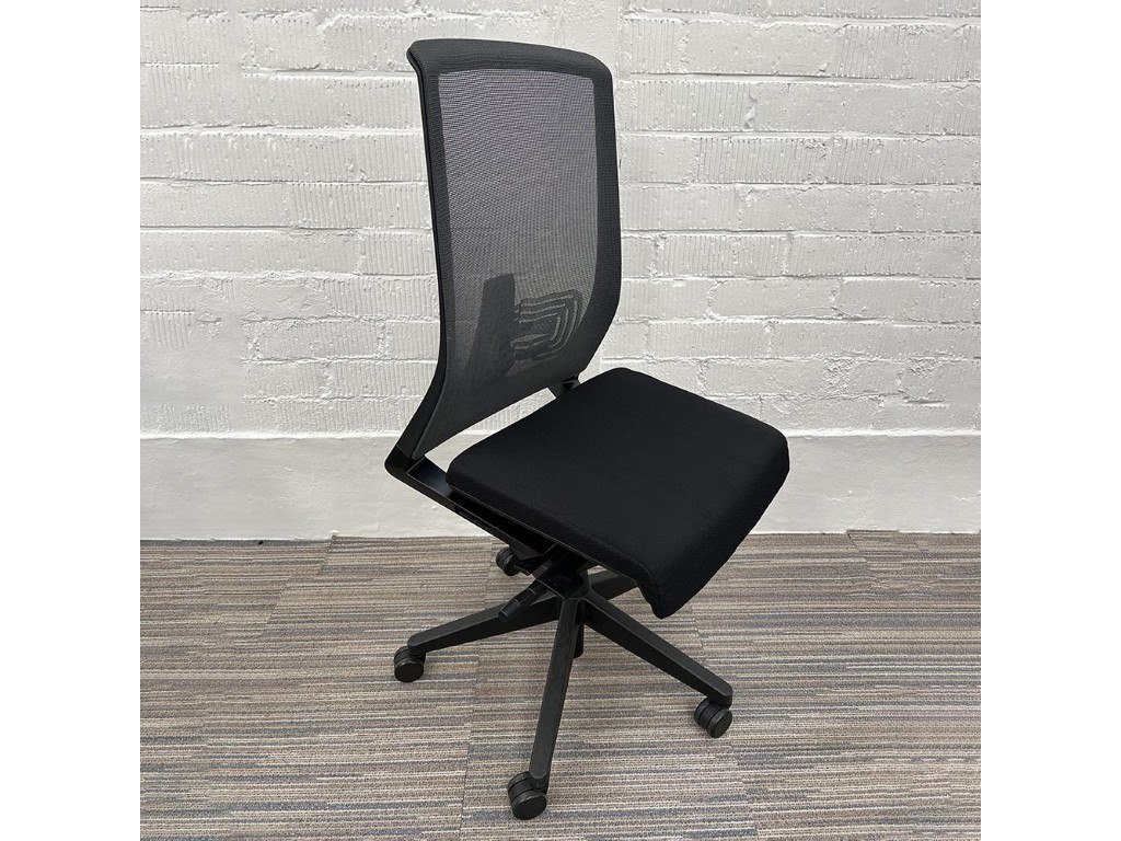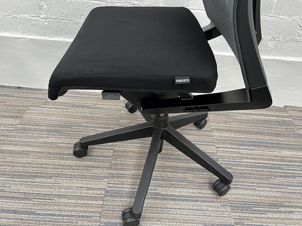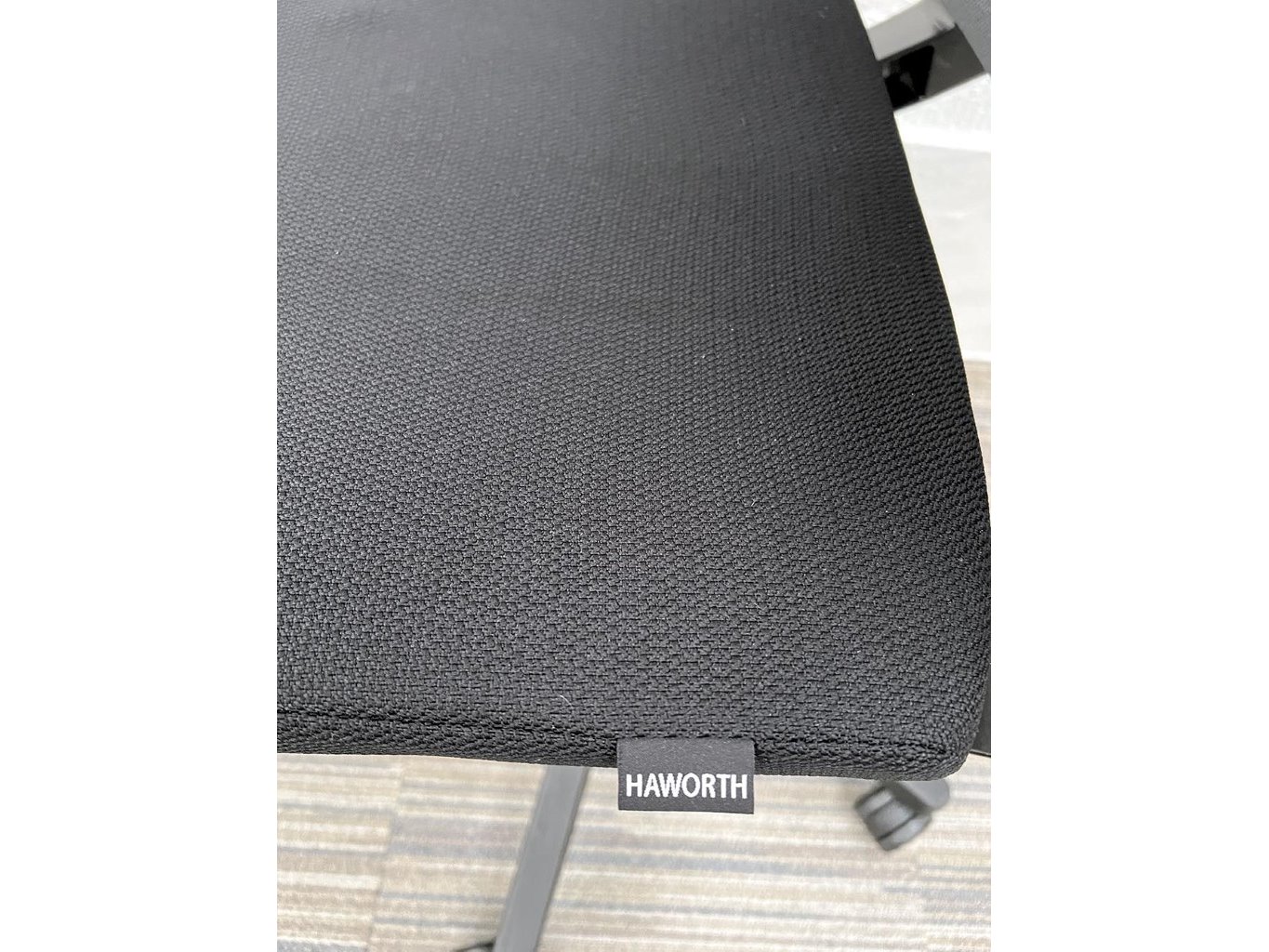 1x HAWORTH Bureaustoel - Zwart Mesh, zwart kunststof voetkruis met wielen, zonder armleuningen