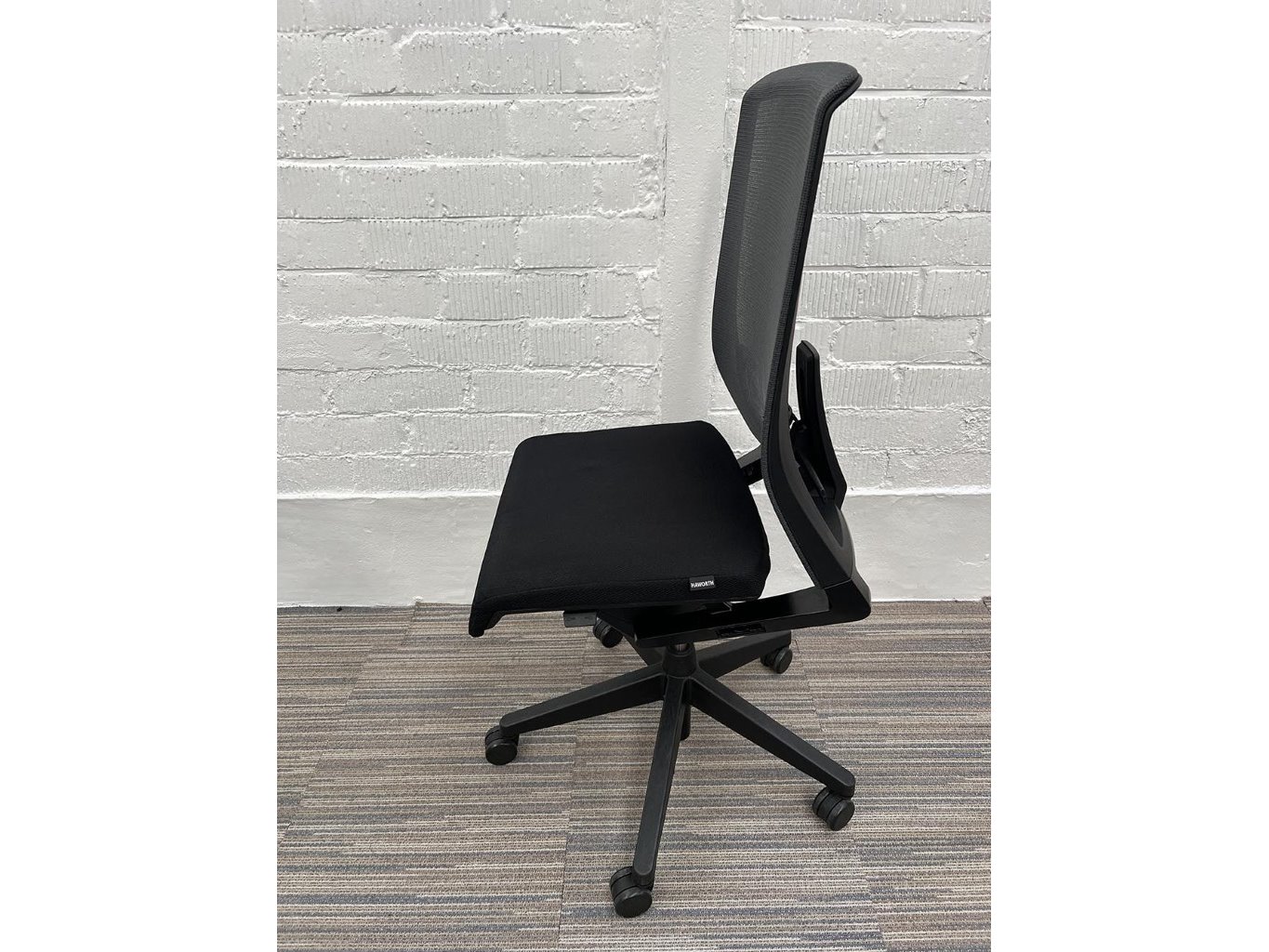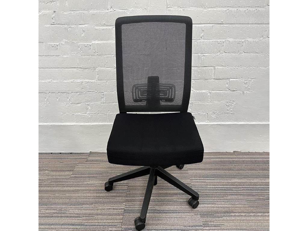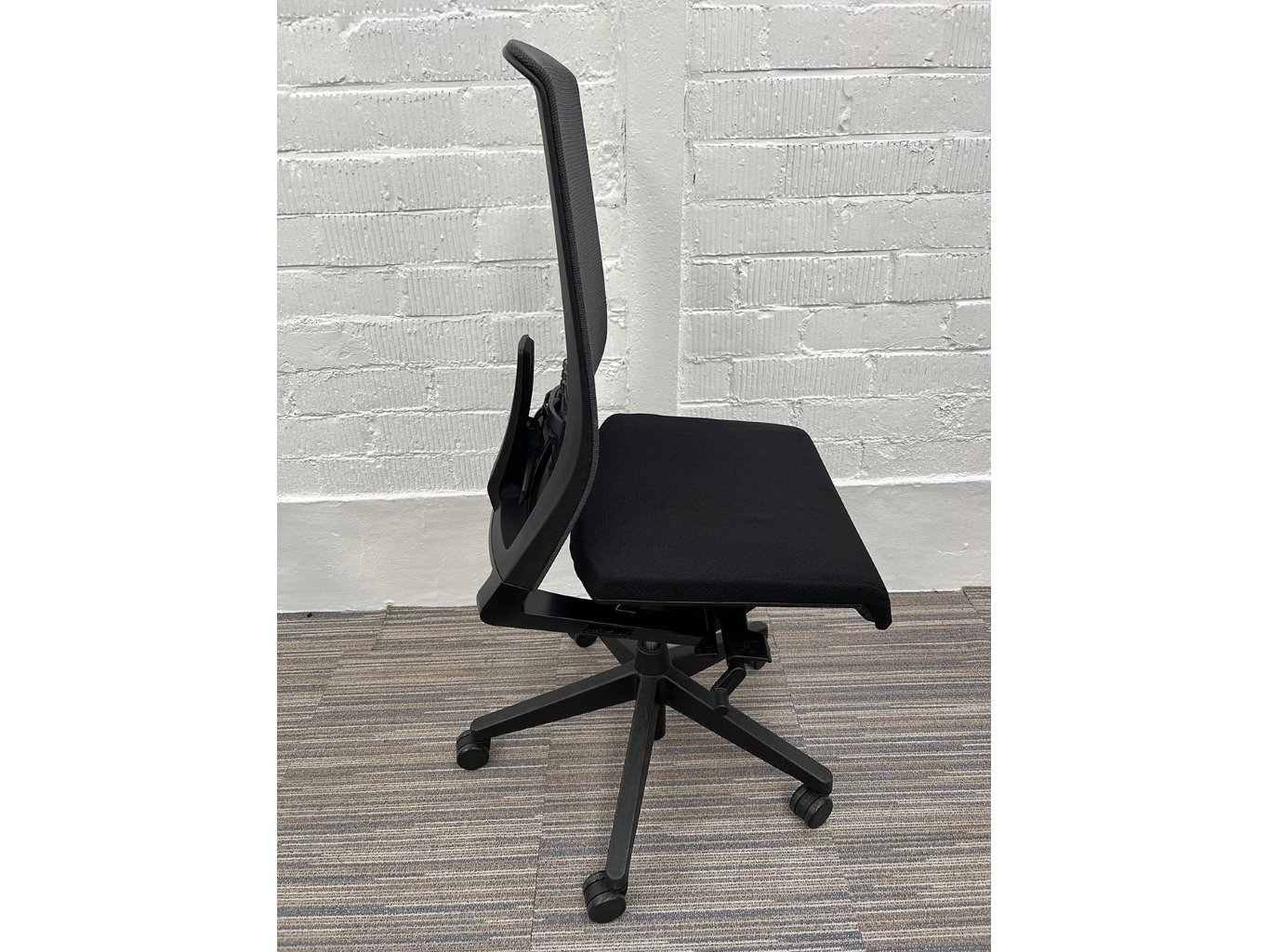 1x HAWORTH Bureaustoel - Zwart Mesh, zwart kunststof voetkruis met wielen, zonder armleuningen