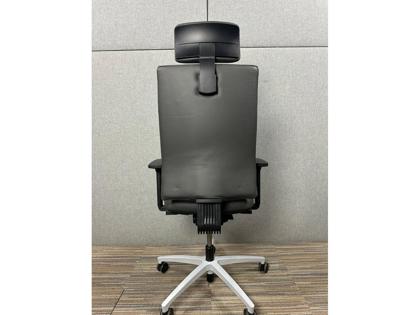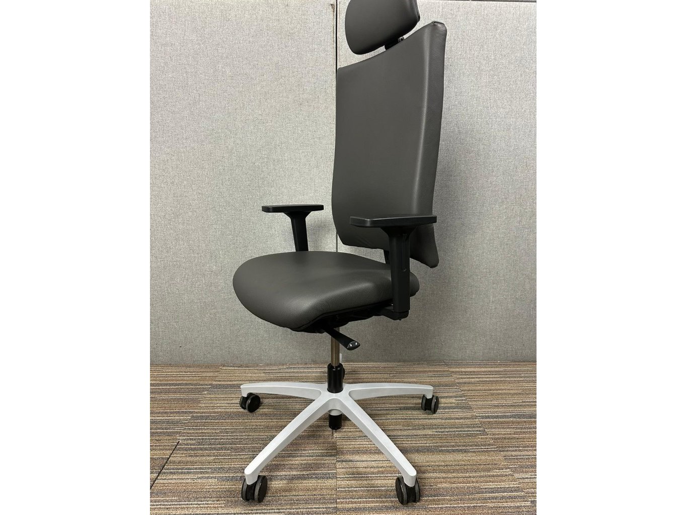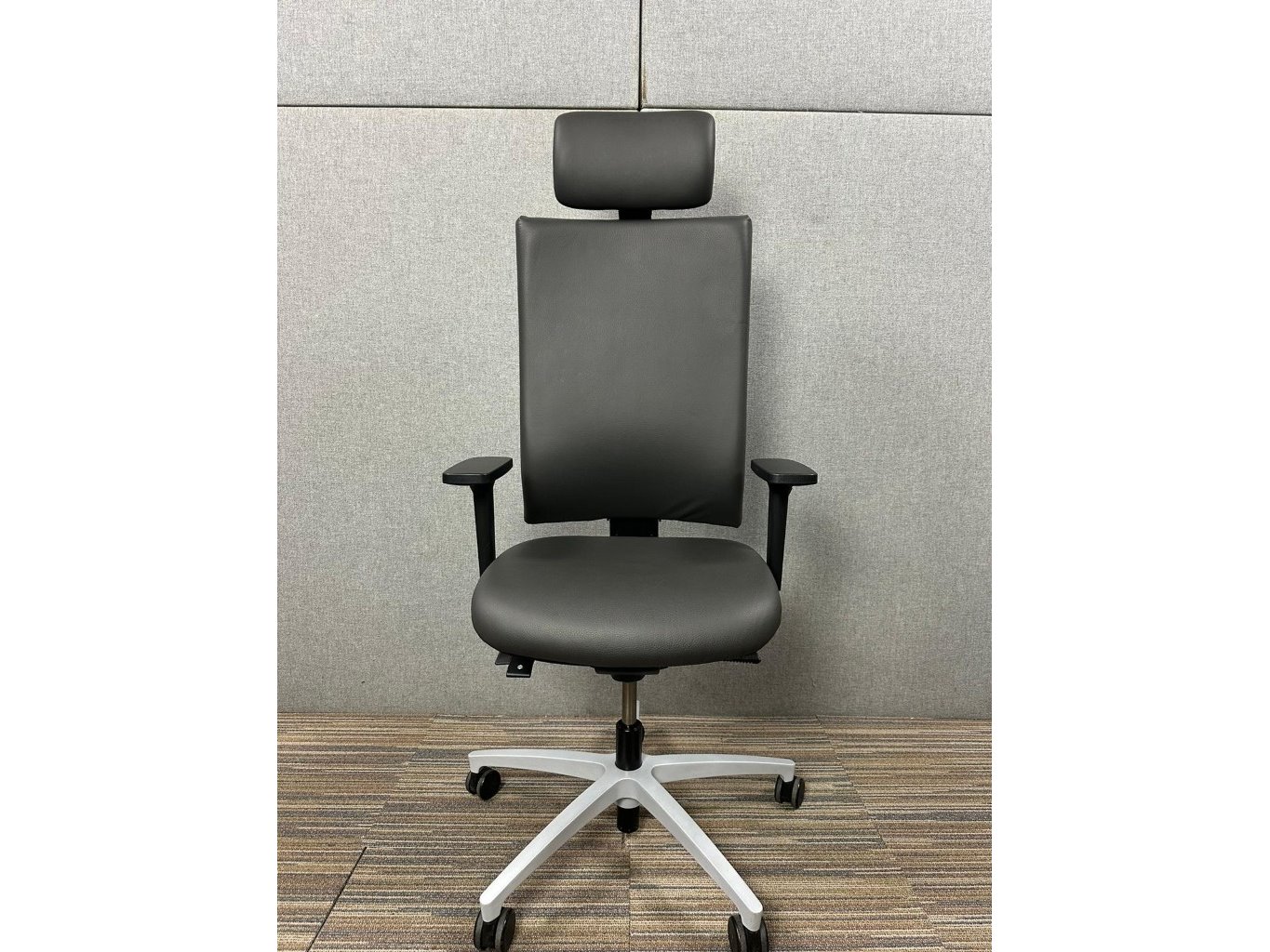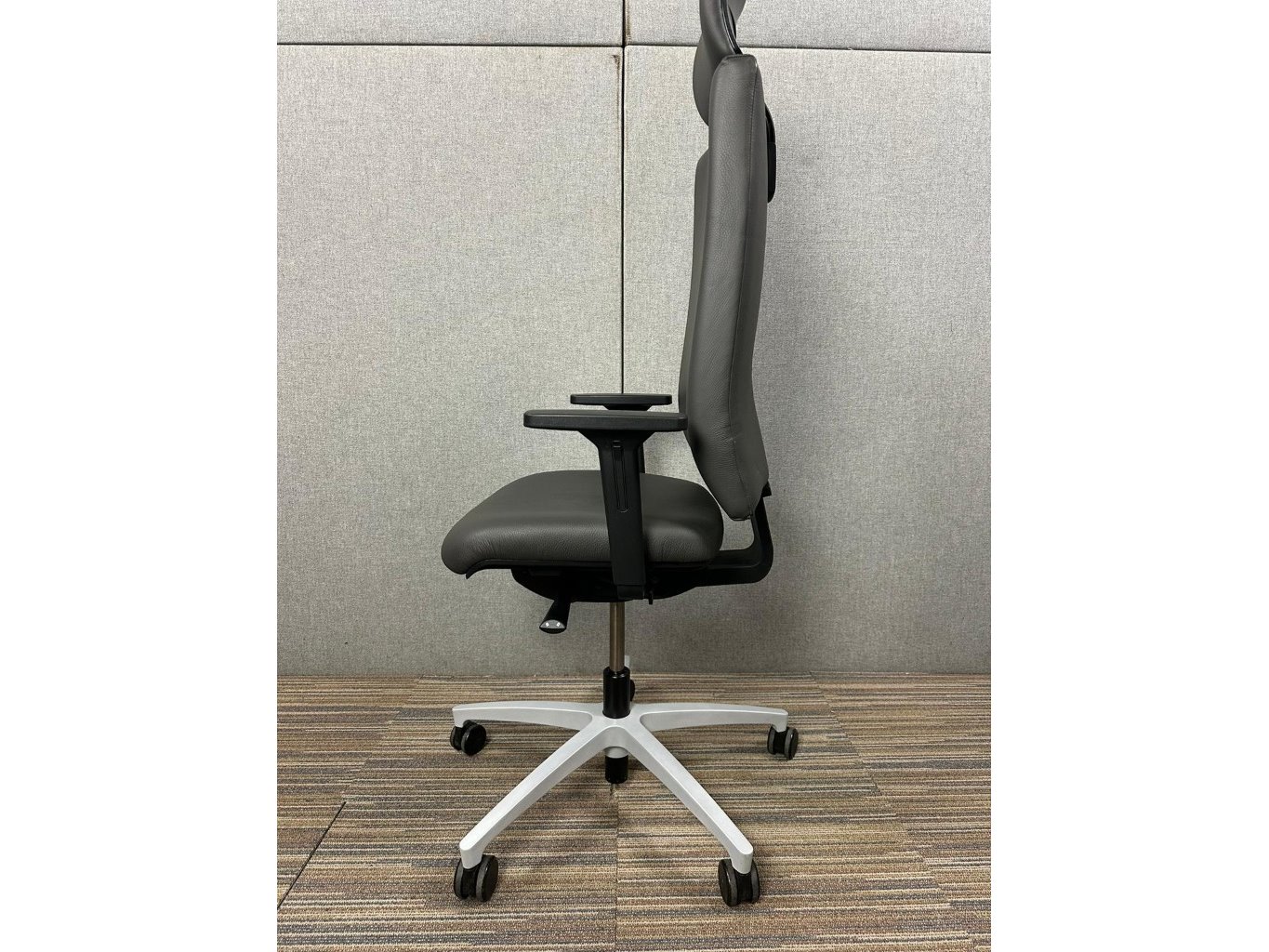 1x DAUPHIN Just Magic Bureaustoel - Grijs Leder, gepolijst aluminium voetkruis met wielen, demomodel, met hoofdsteun en hoge rug, goede staat