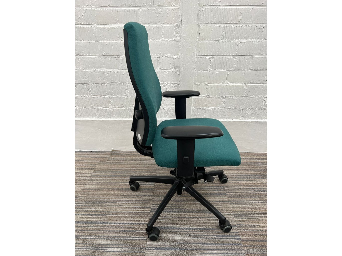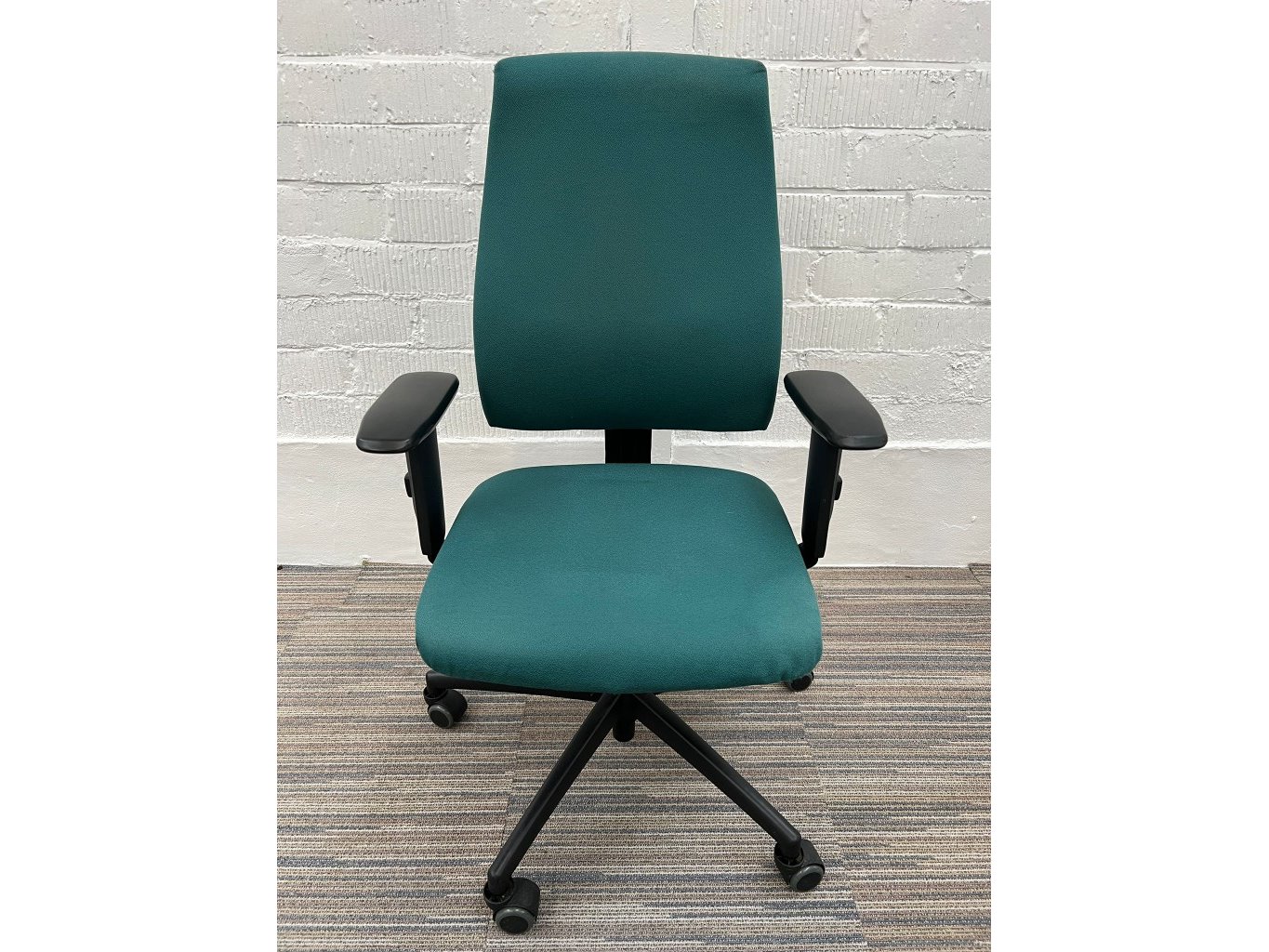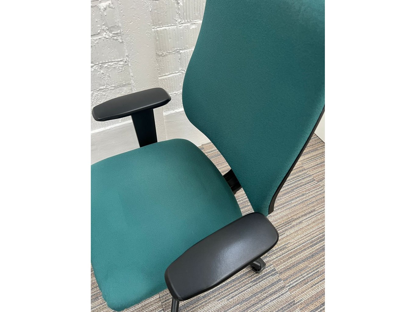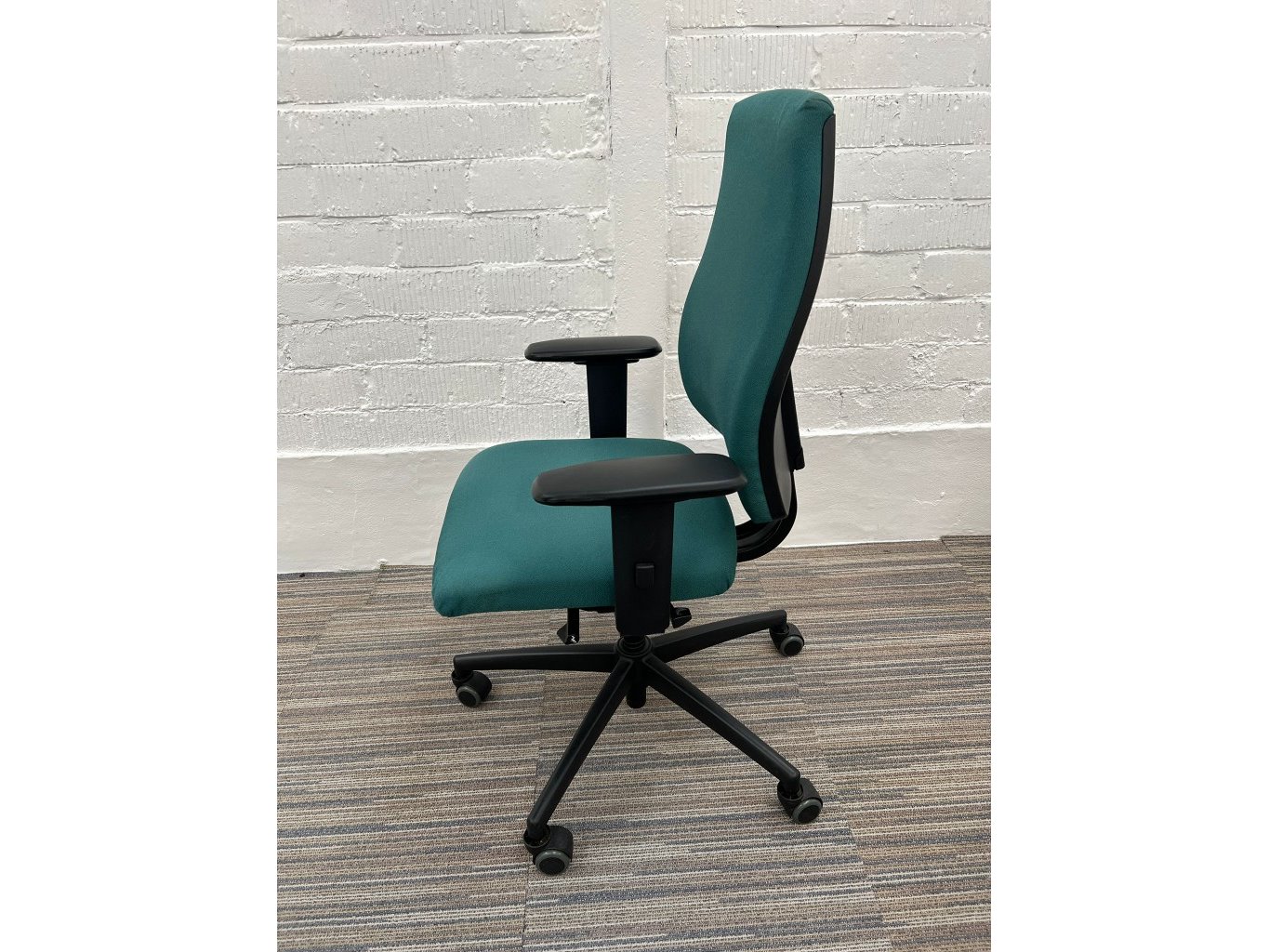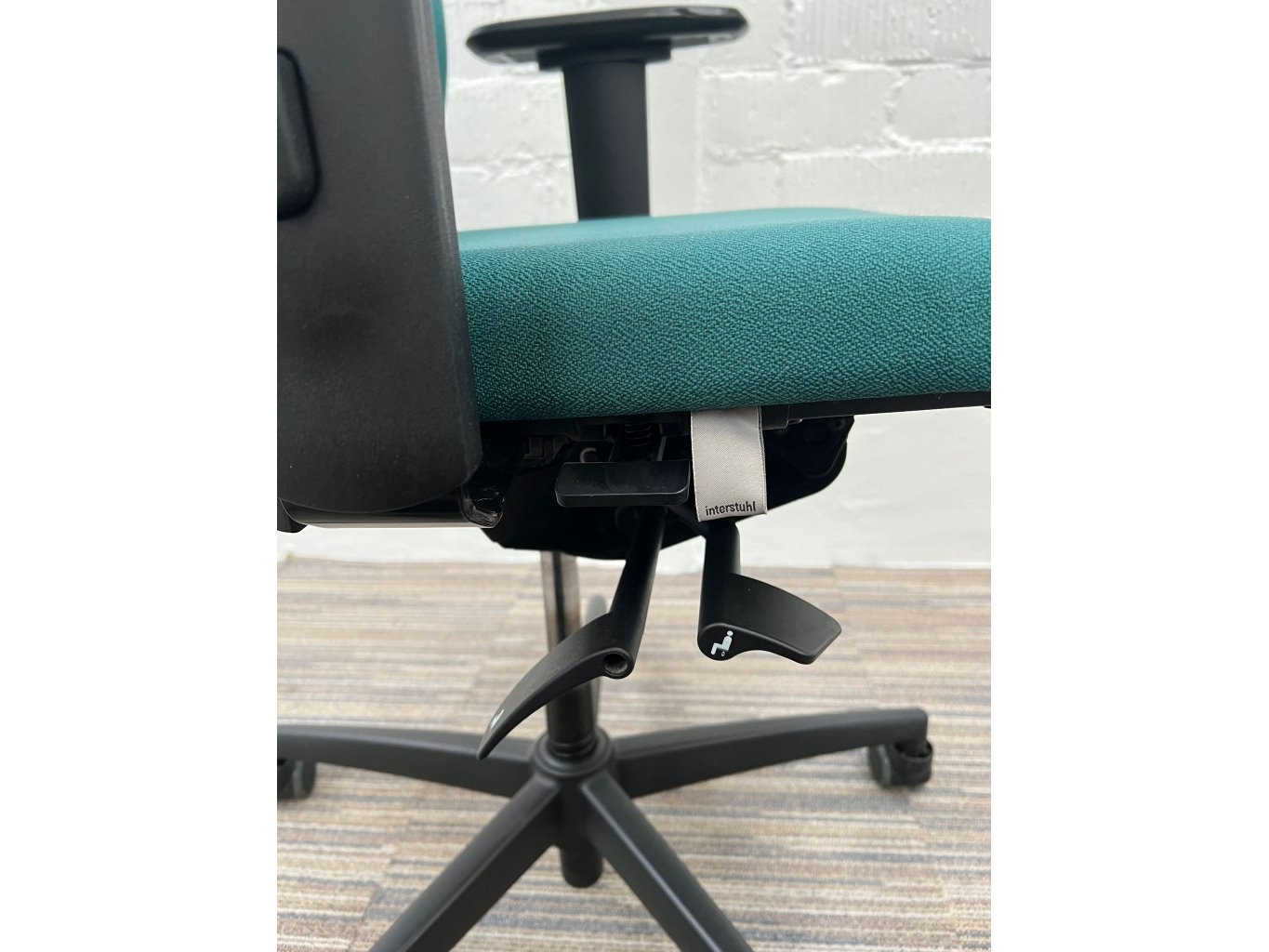 1x INTERSTUHL Goal Bureaustoel - Groen Stof, zwart kunststof voetkruis met wielen, goede staat