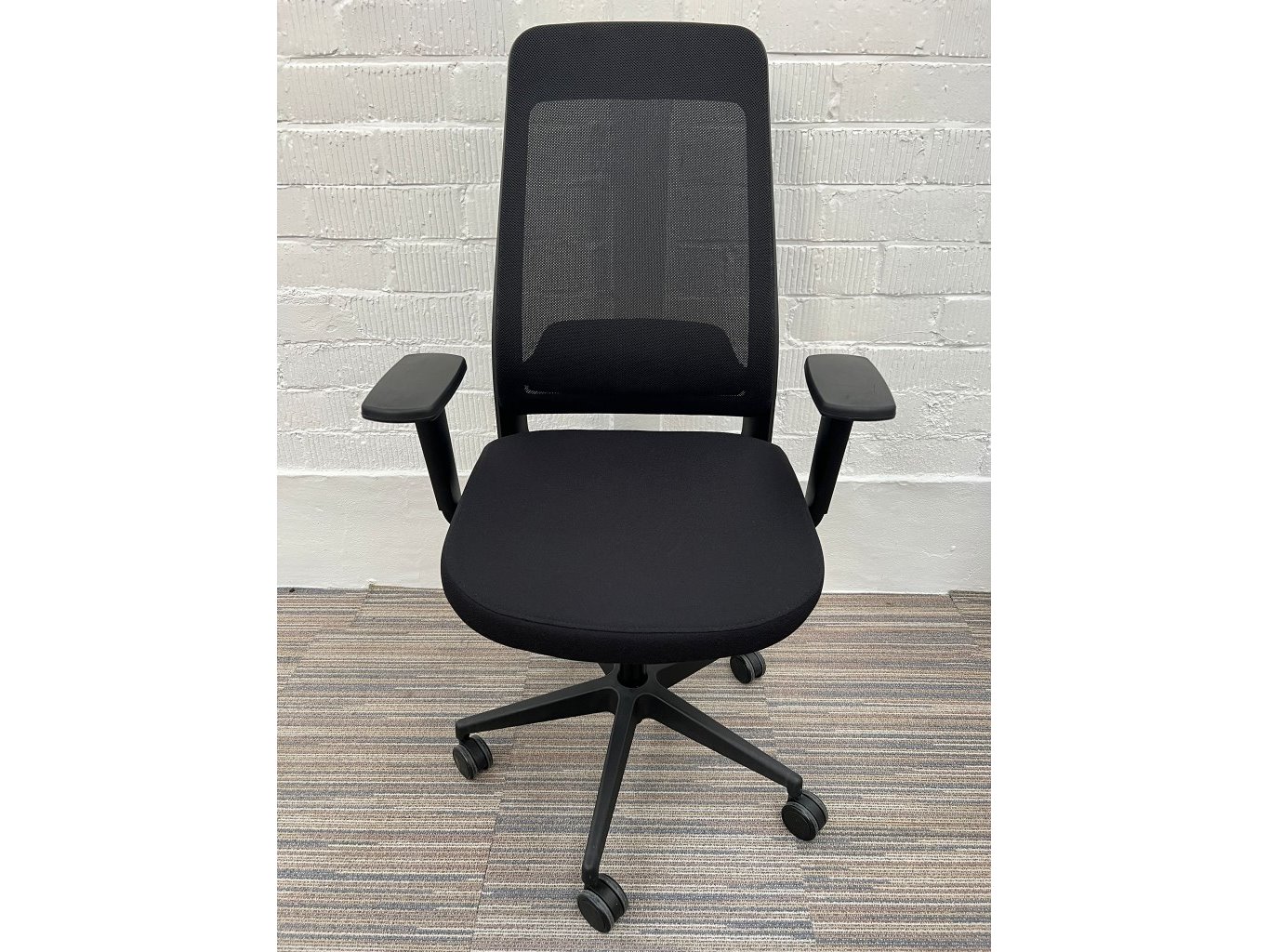 1x MEYER Bureaustoel - Zwart Mesh, zwart kunststof voetkruis met wielen, perfecte staat