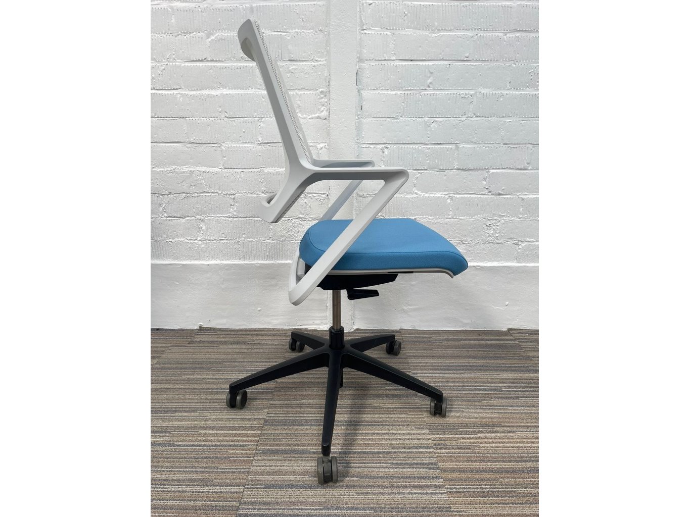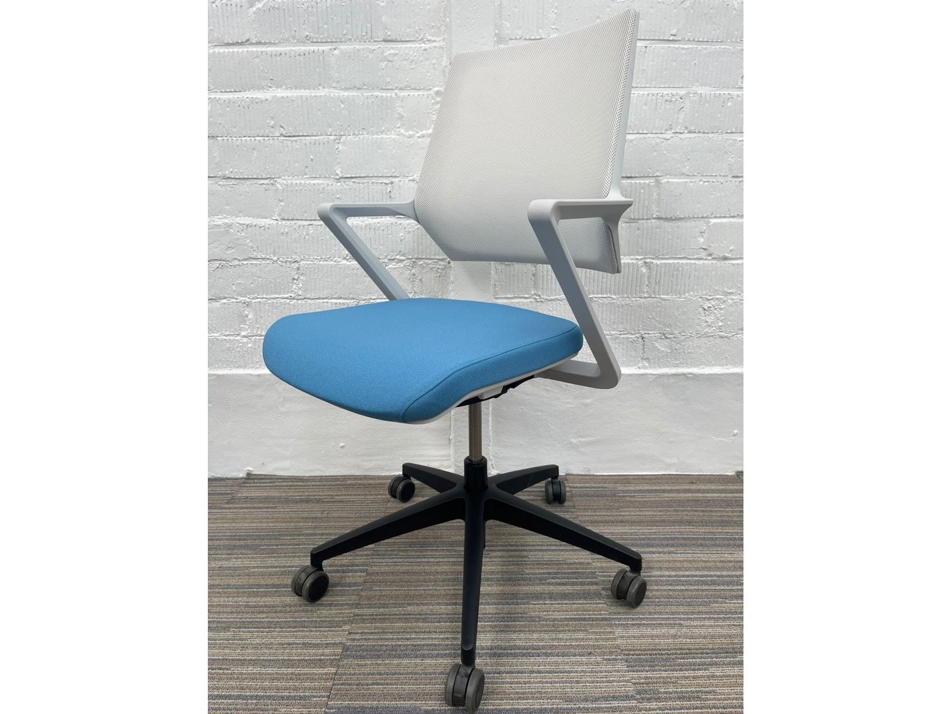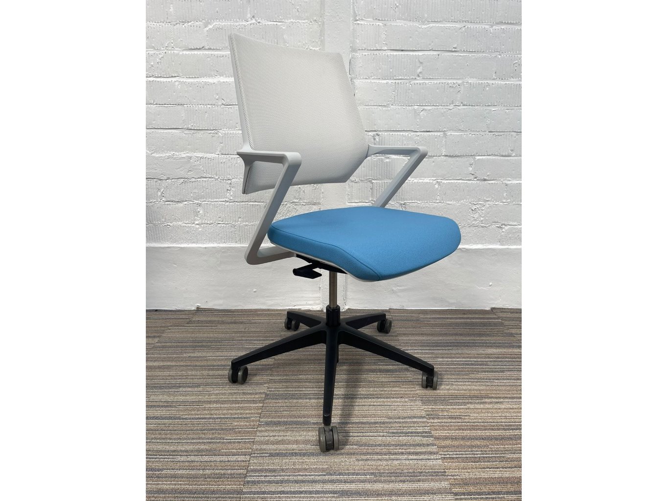 1x GISPEN Zinn Multi Bureaustoel - Blauw/wit Stof, zwart kunststof voetkruis met wielen, demomodel, uitstekende staat