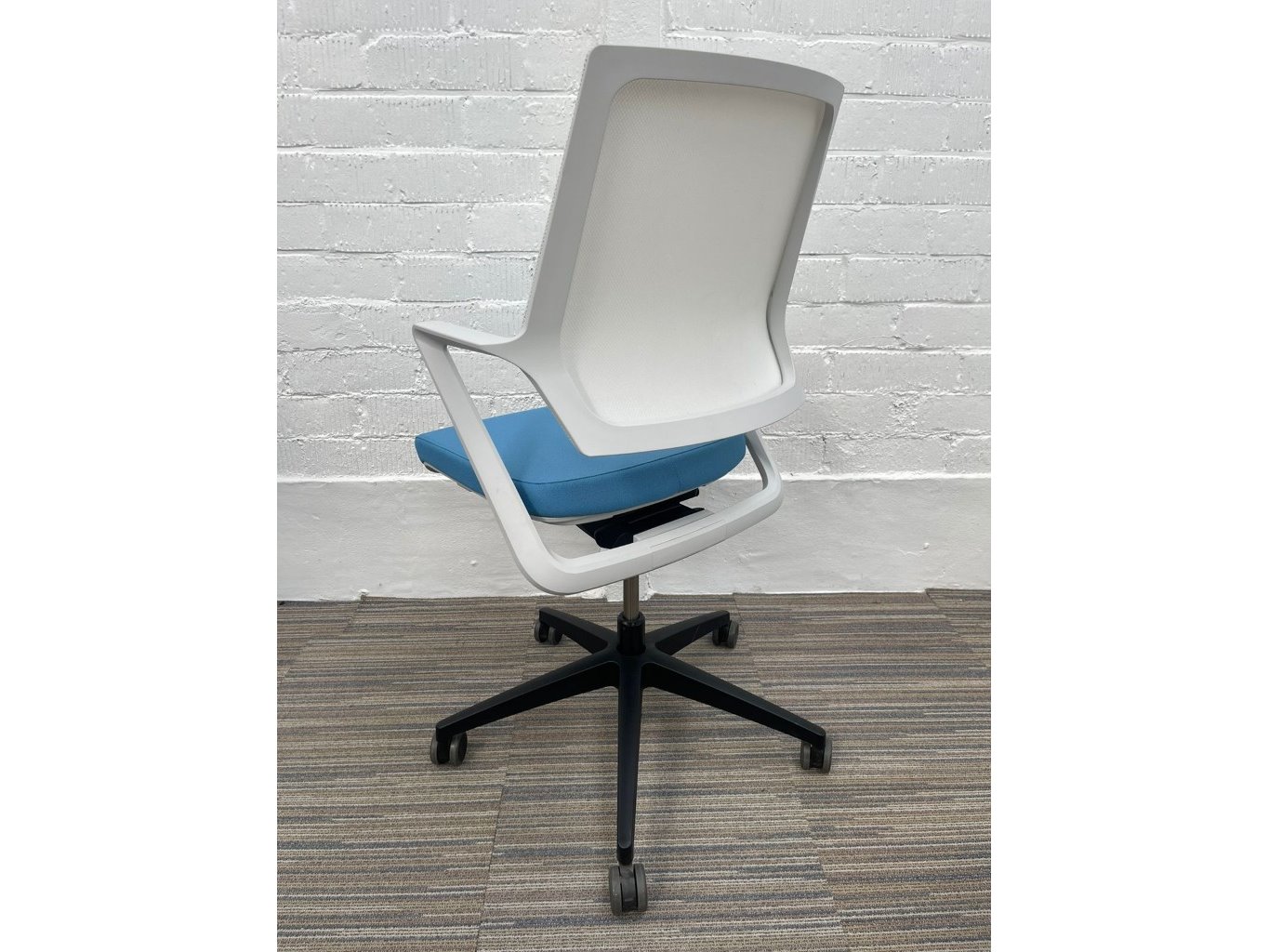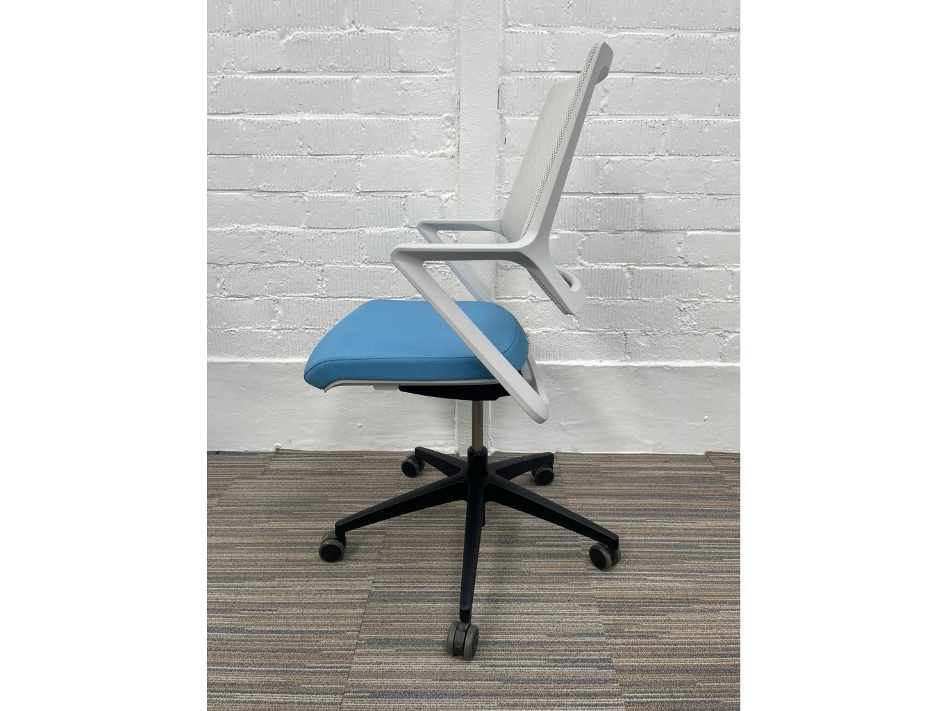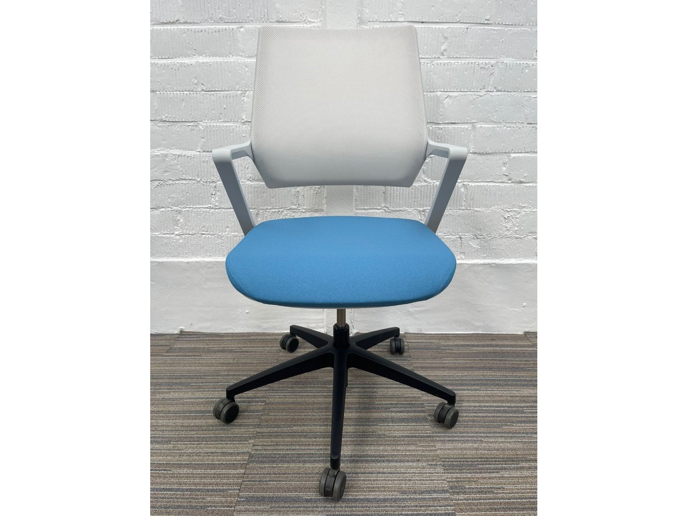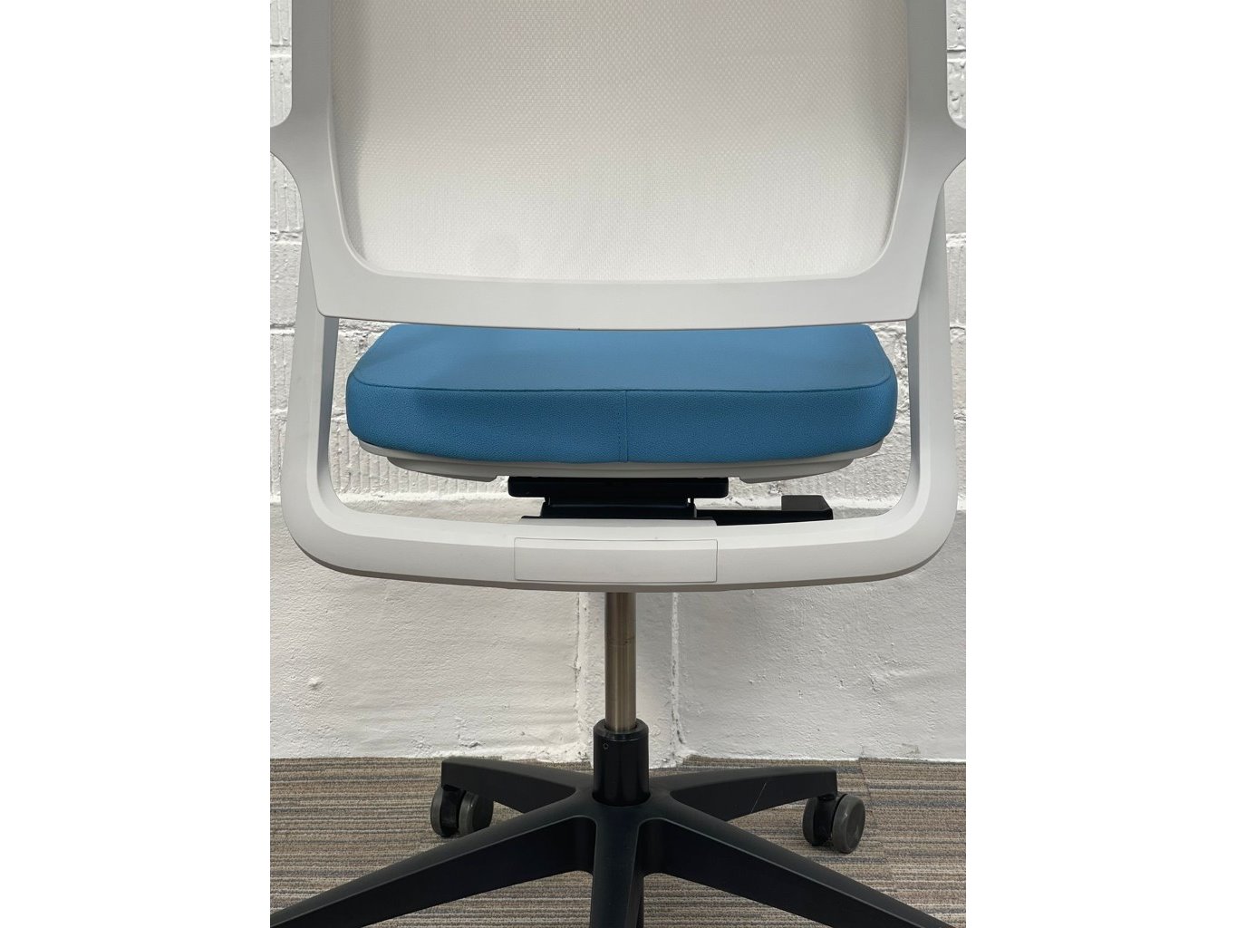 1x GISPEN Zinn Multi Bureaustoel - Blauw/wit Stof, zwart kunststof voetkruis met wielen, demomodel, uitstekende staat