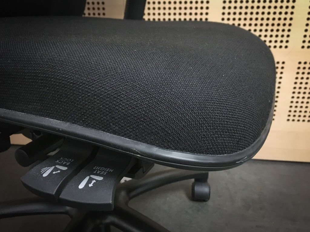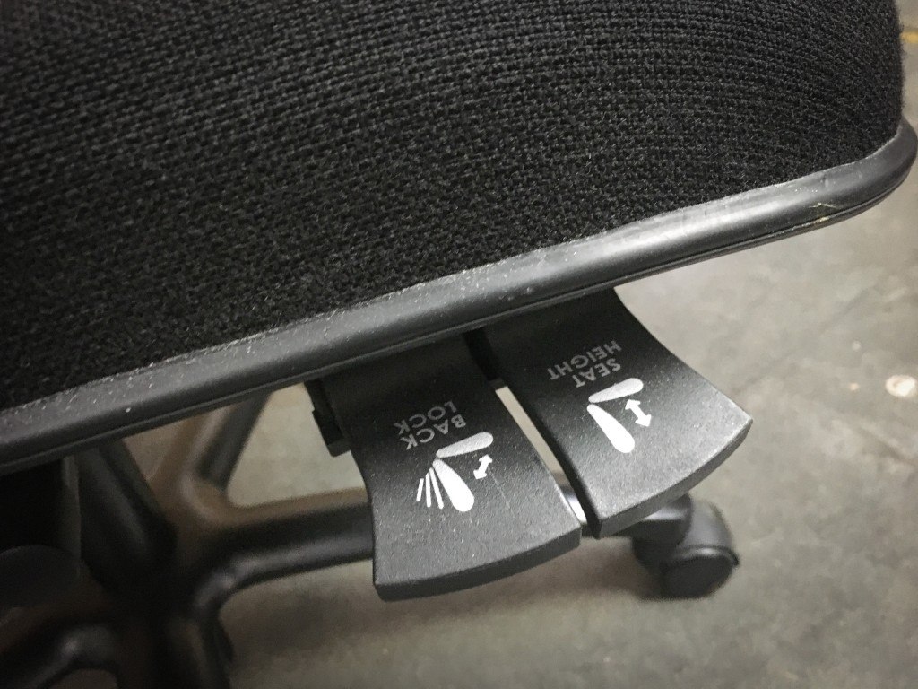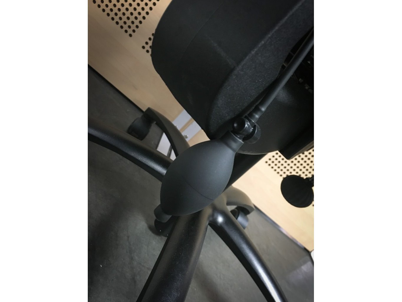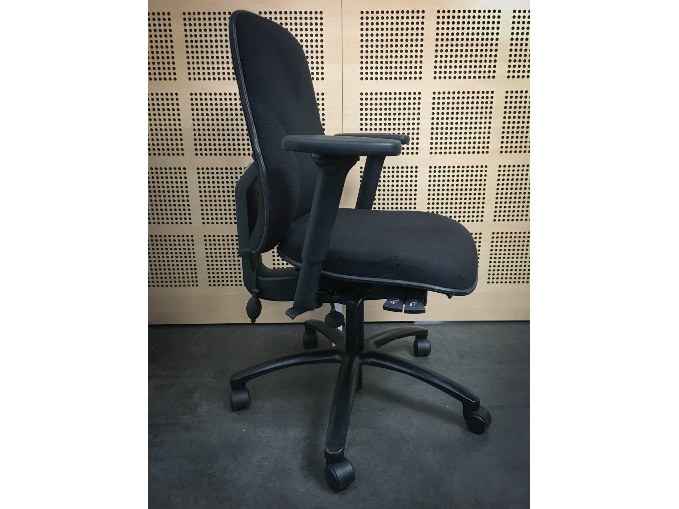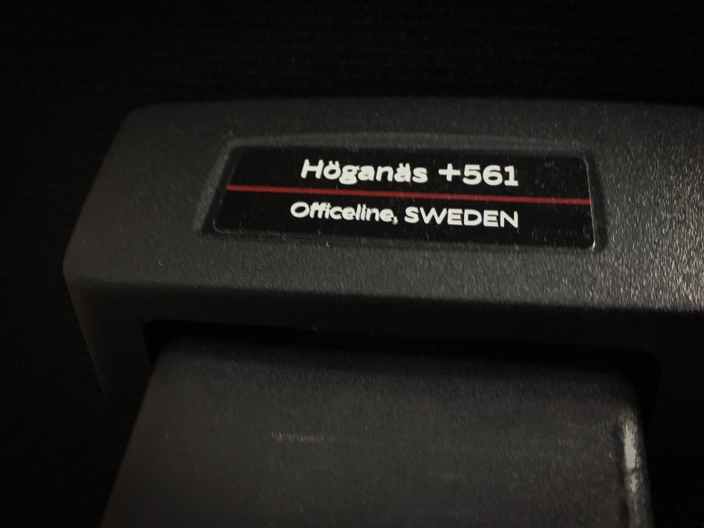 1x HÖGANÄS +561 Bureaustoel - Zwart Stof, zwart metalen voetkruis met wielen, lichte gebruikssporen op armleuningpads en onderstel, niet gereinigd