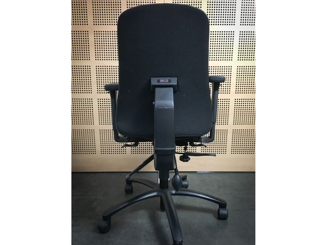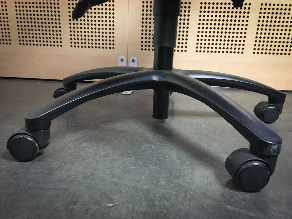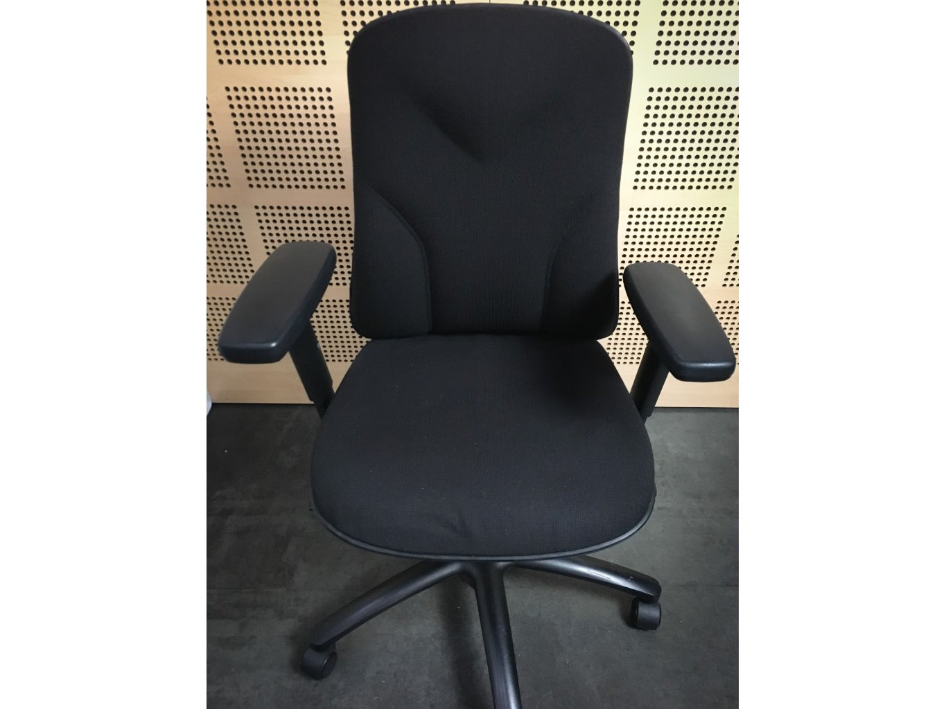 1x HÖGANÄS +561 Bureaustoel - Zwart Stof, zwart metalen voetkruis met wielen, enkele gebruikssporen op onderstel en achterzijde, niet gereinigd