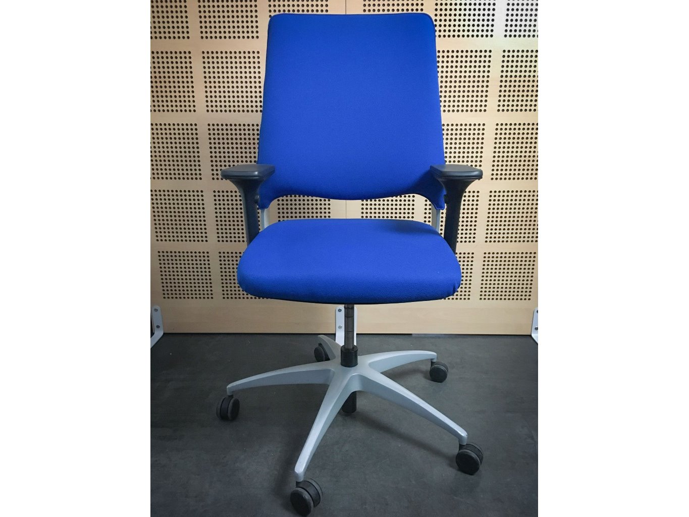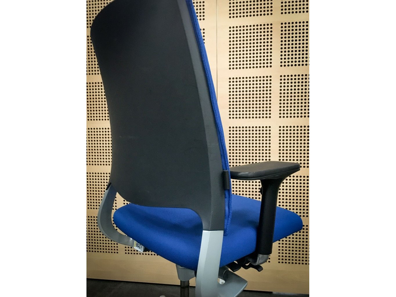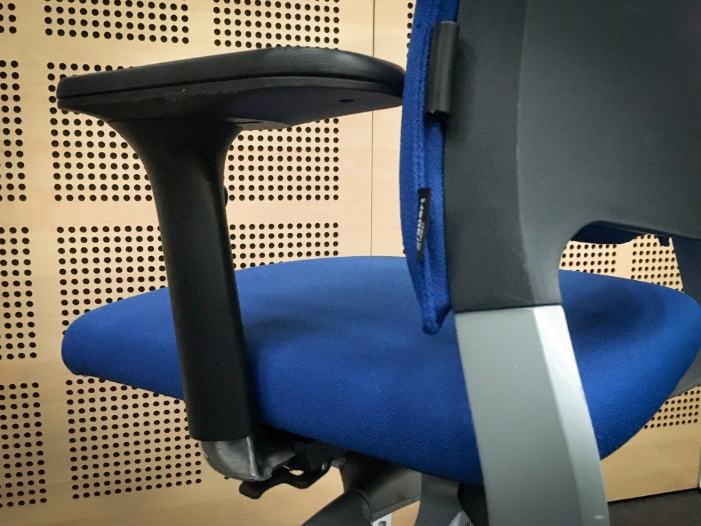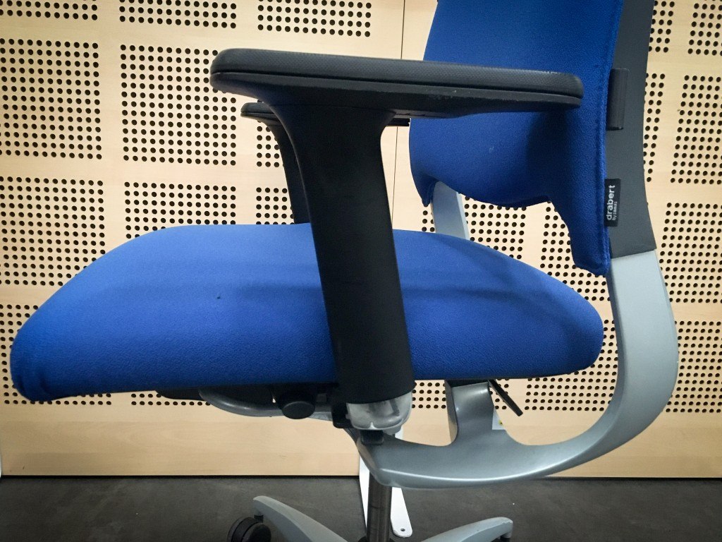 1x DRABERT Salida Bureaustoel - Blauw Stof, grijs metalen voetkruis met wielen, lichte vlek op zitvlak (wasbaar) en minimale gebruikssporen, niet gereinigd