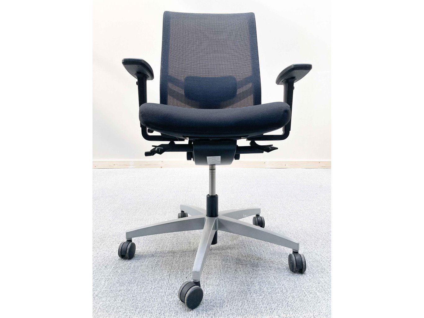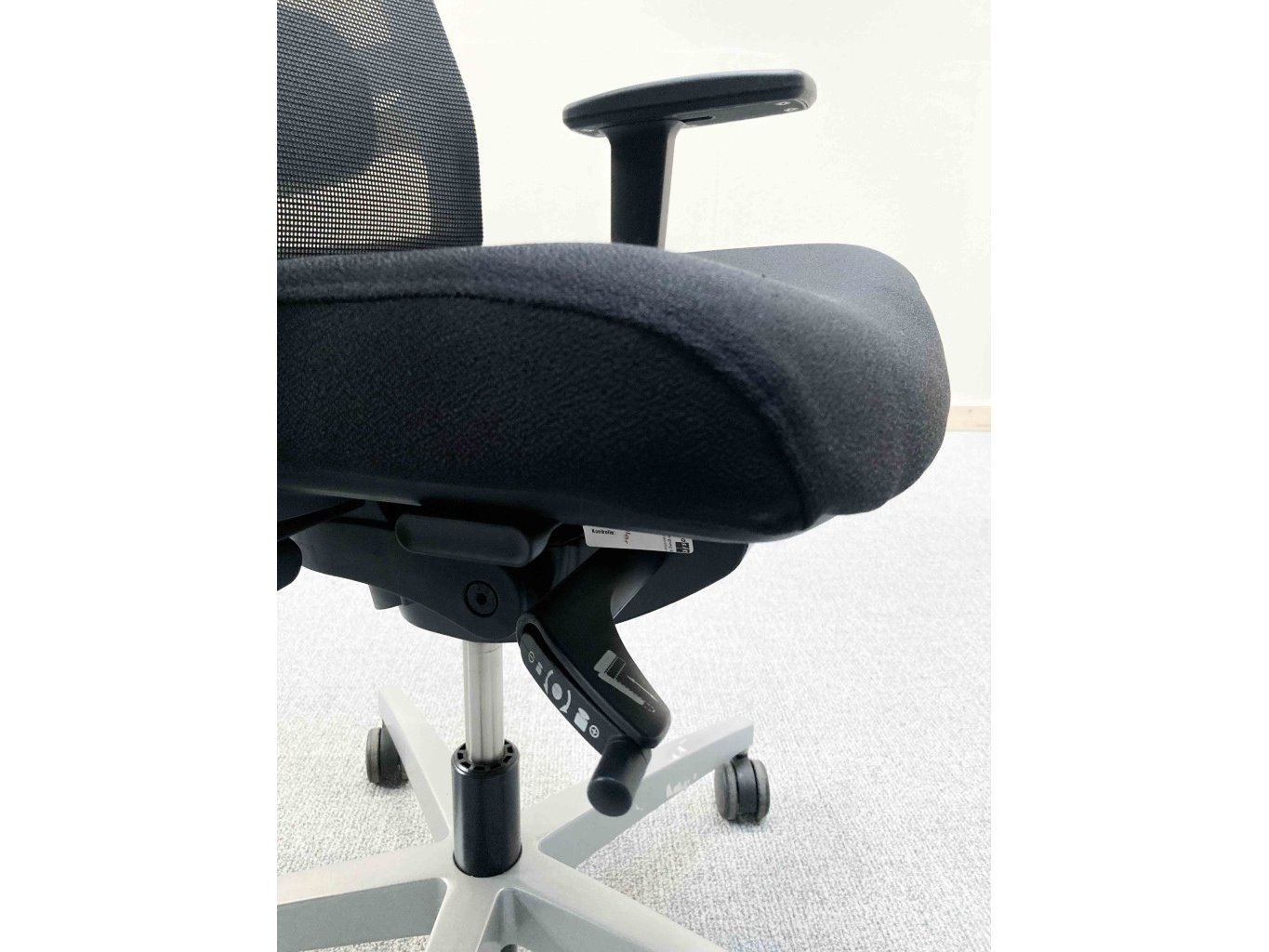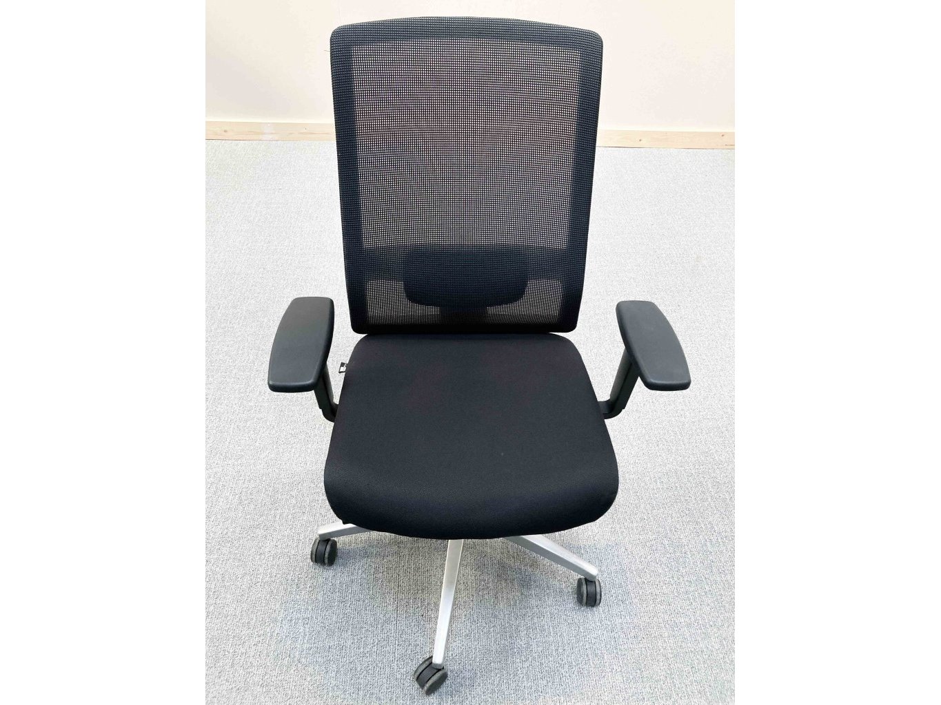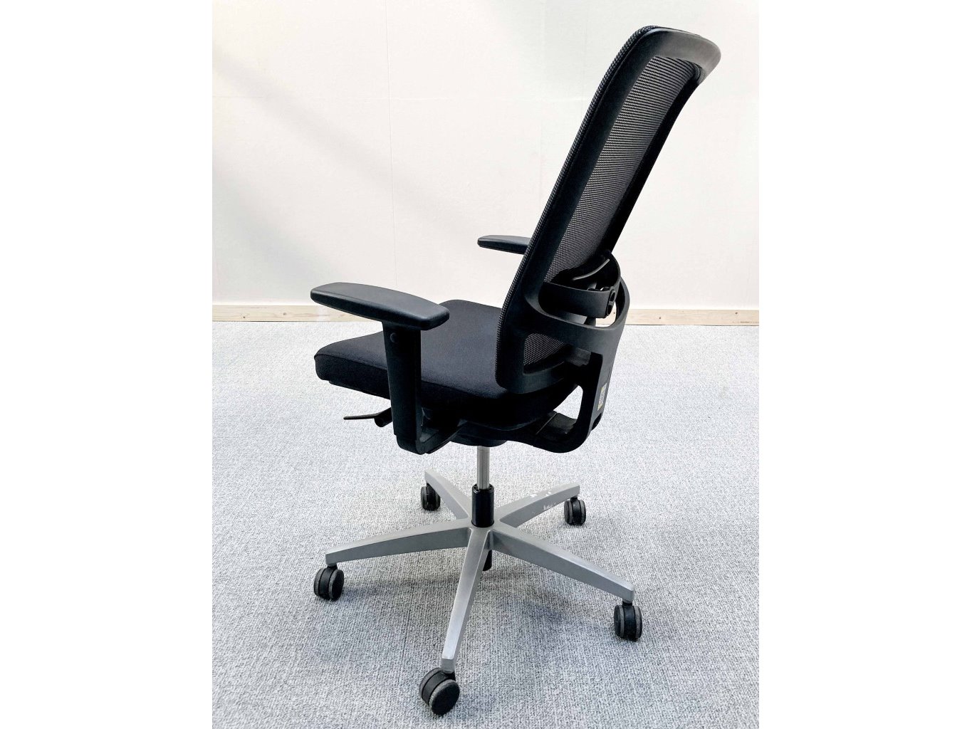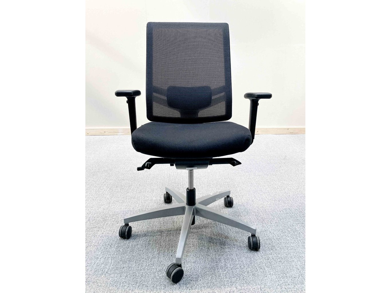 1x VIASIT Linea Netweave Ergonomische Bureaustoel - Zwart Stof/Mesh, grijs metalen voetkruis met wielen, niet gereinigd