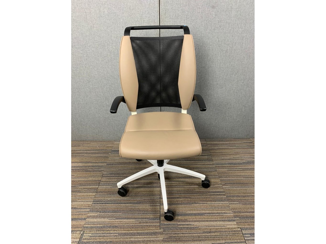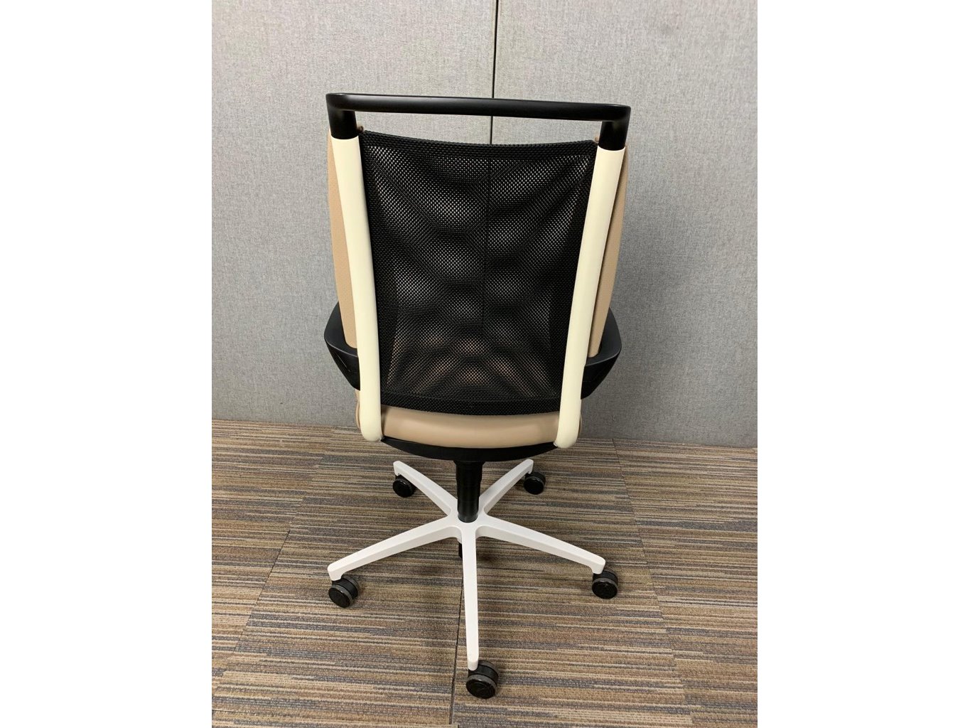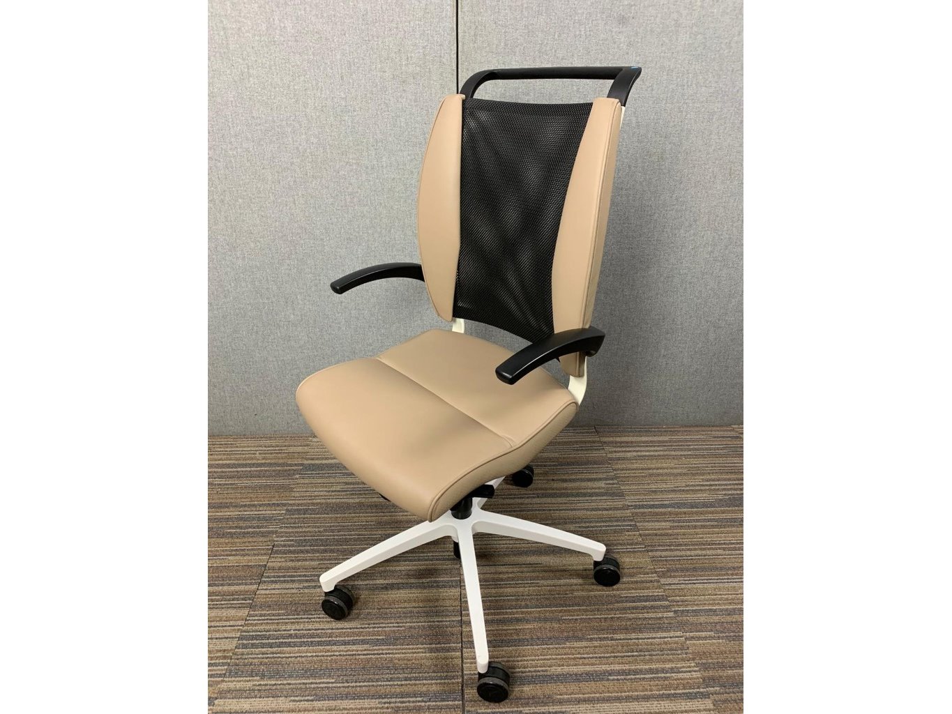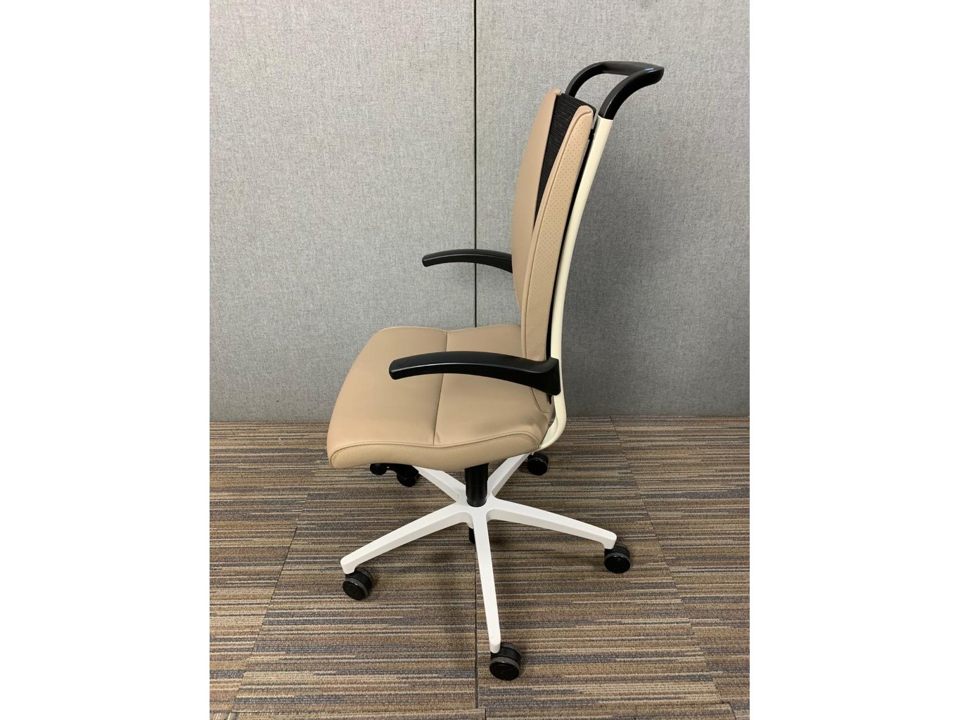 1x ZÜCO Effe Two Directiestoel - Mokka/wit Leder, wit aluminium voetkruis met wielen, demomodel, goede staat.