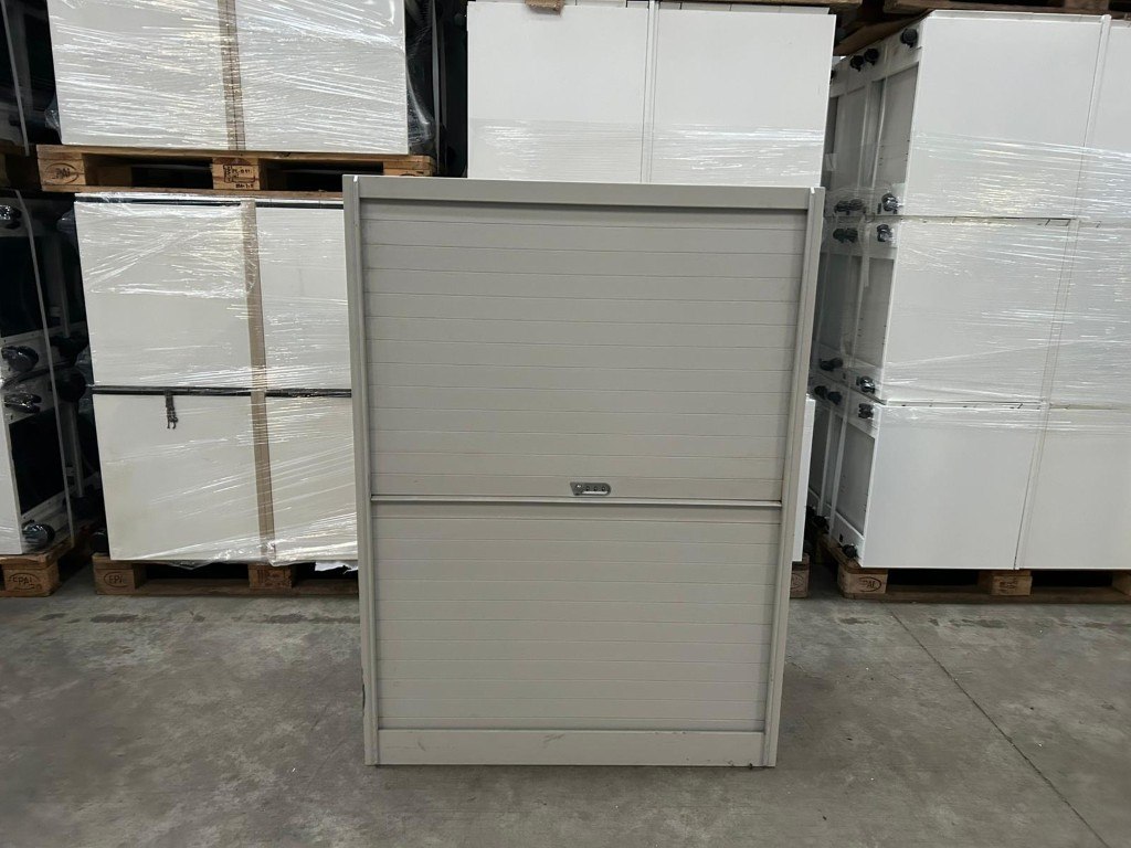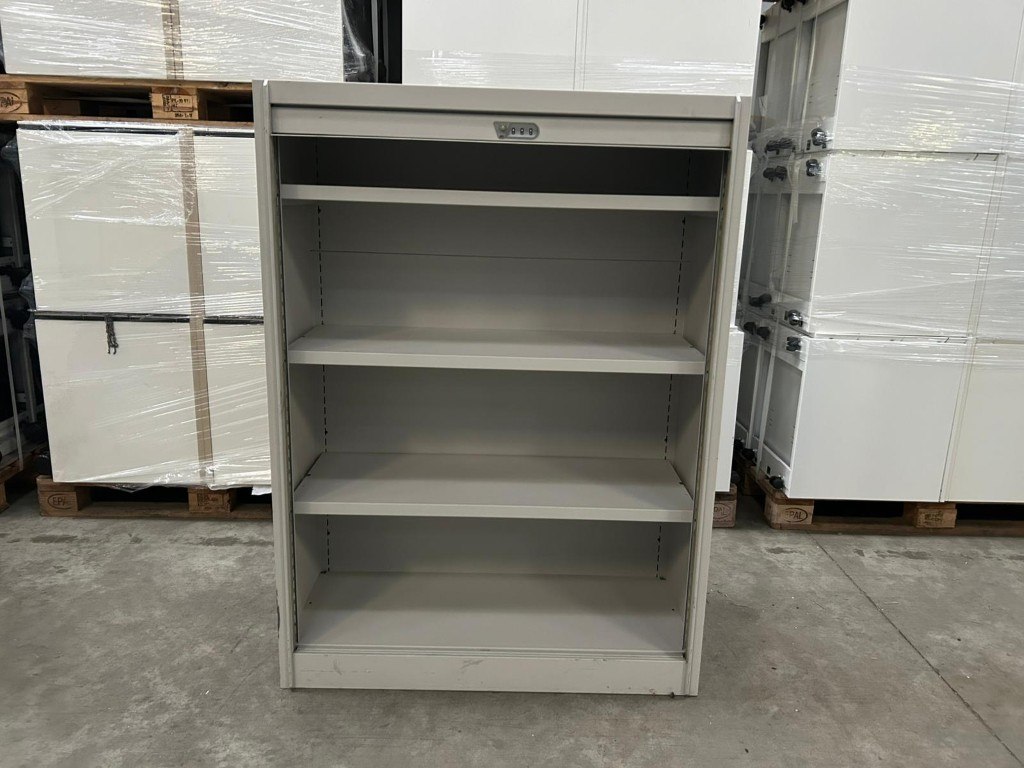 1x BULO Halfh Hor Roldeurkast H138xB100xD48 - Grijs/Metaal, met enkele gebruikssporen