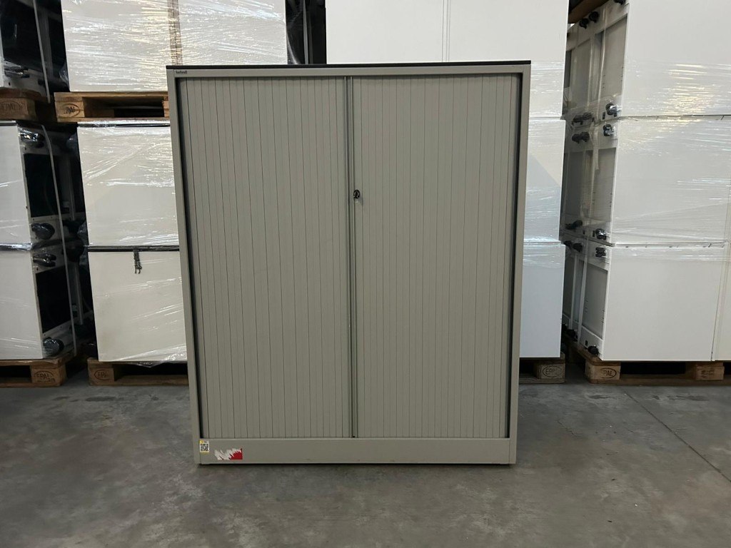 1x AHREND Halfh Vert Roldeurkast H145xB120xD45 - Grijs/Metaal, met enkele gebruikssporen
