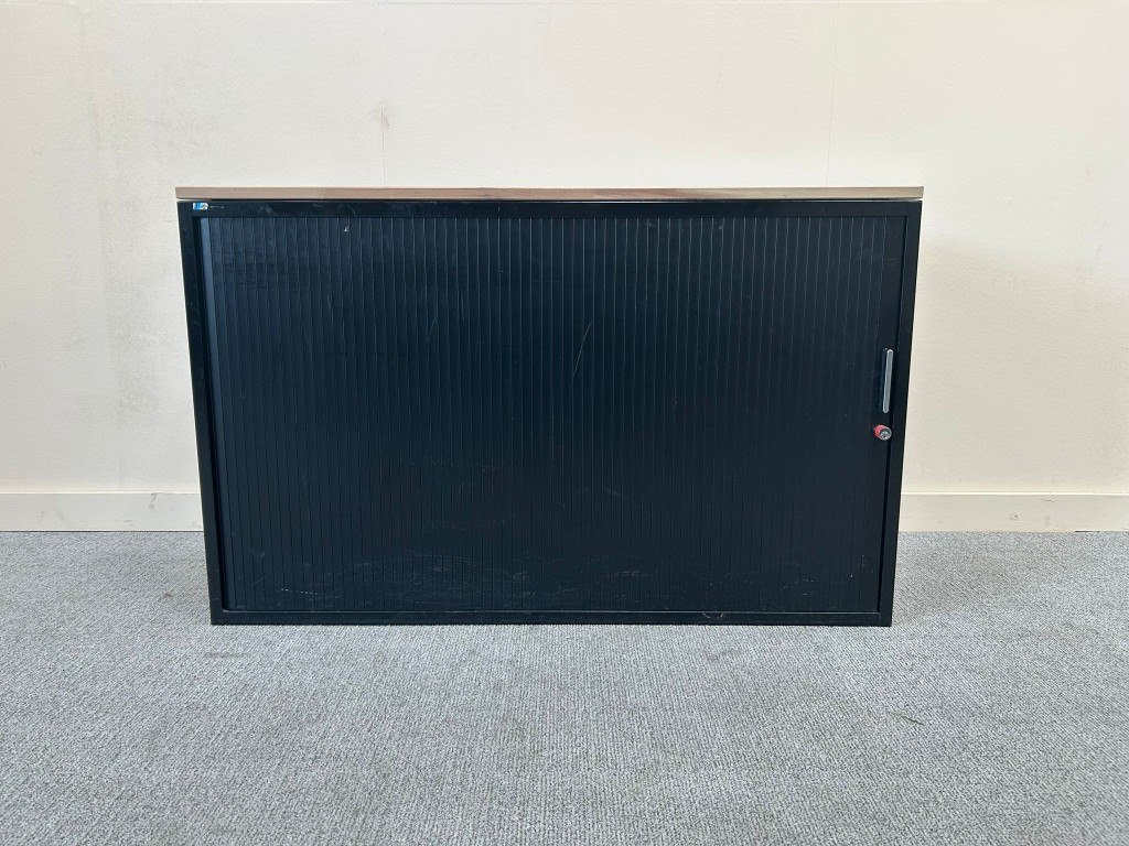 1x LISTA Lage Vert Roldeurkast H76xB120xD40 - Zwart/Metaal, Sleutel afwezig, top is mogelijk los , lichte krassen en gebruikssporen