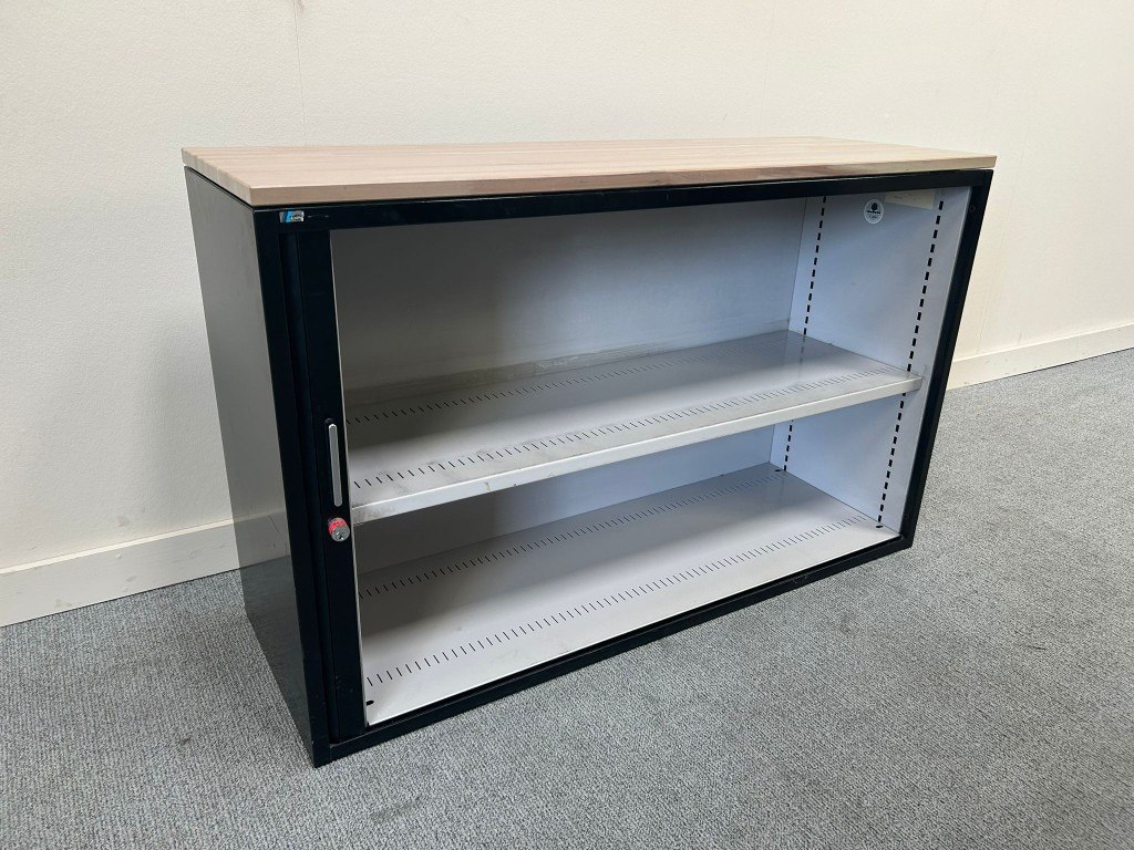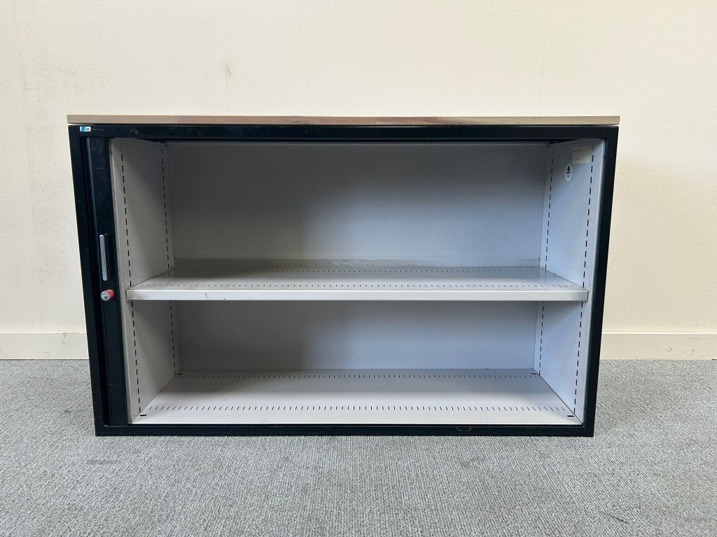 1x LISTA Lage Vert Roldeurkast H76xB120xD40 - Zwart/Metaal, Sleutel afwezig, top is mogelijk los , lichte krassen en gebruikssporen