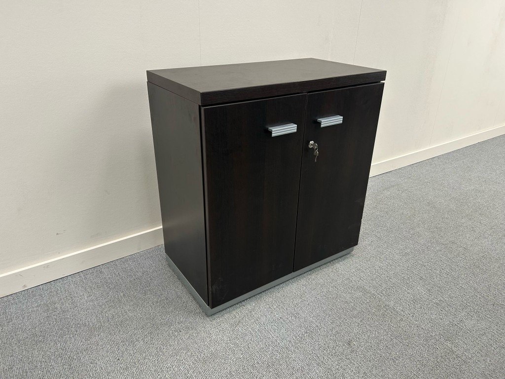 1x Lage Draaideurkast H86xB80xD46 - Donker hout, Alle sleutels aanwezig, met enkele gebruikssporen en verzadiging