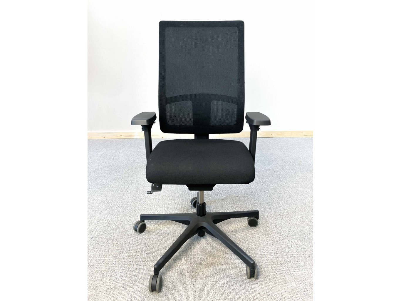 1x ROBBERECHTS Bureaustoel – Zwart, Stof/Mesh, Zwart Kunststof, Voetkr mt wielen, wasbare vlekken, sticker te verwijderen, gebruiksporen bovenkant.