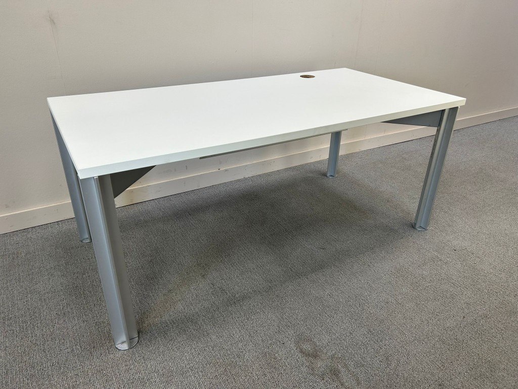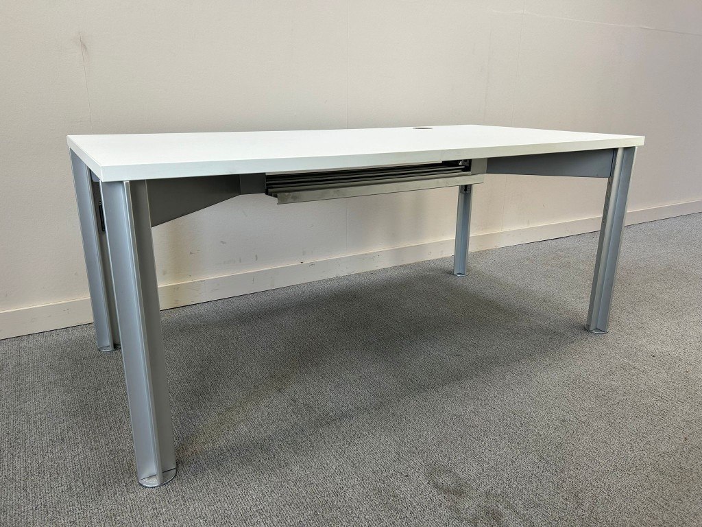 1x BULO bureautafel H78xD80xB160 - Wit/Melamine/Metaal, enkele gebruikssporen