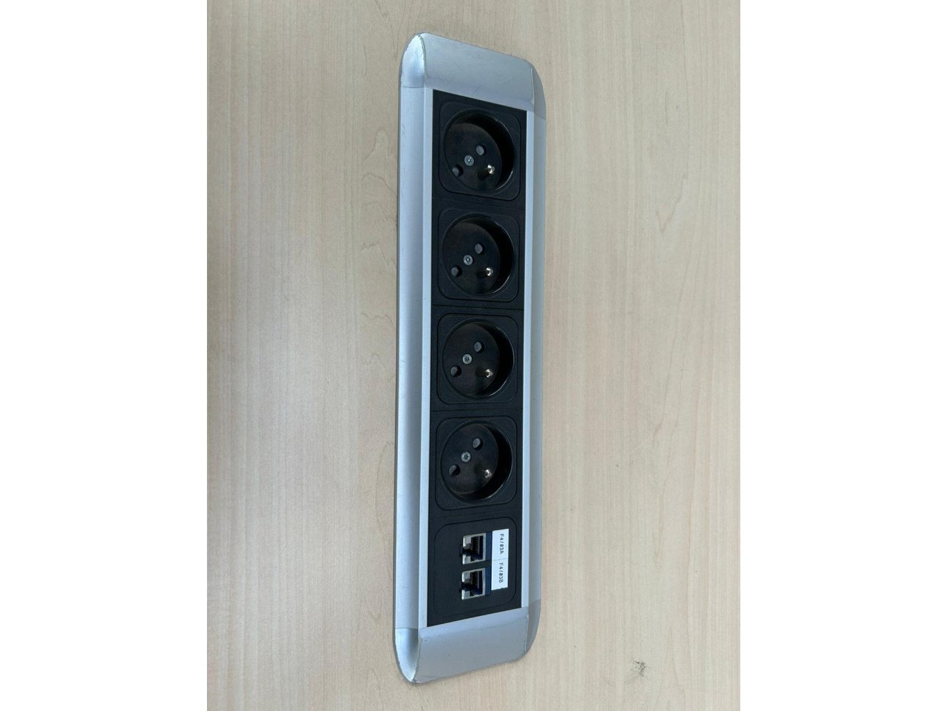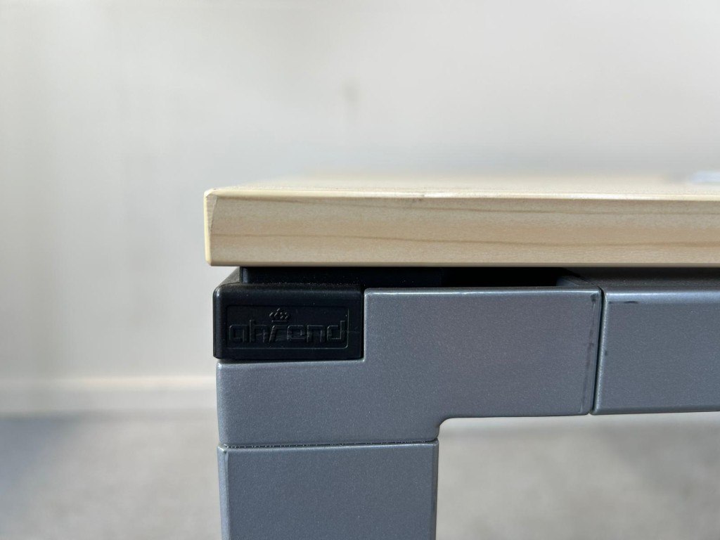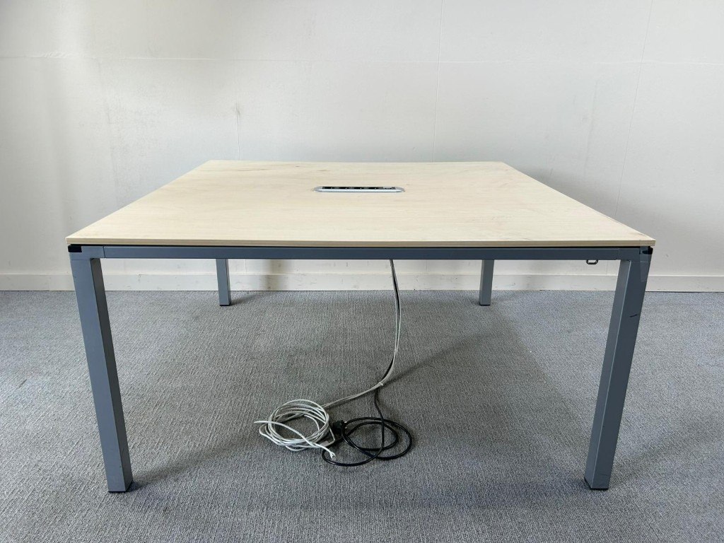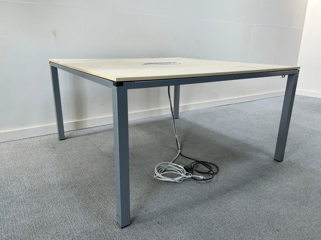 1x AHREND vierkante bureautafel H73xB140xD140 - Hout/Melamine/Metaal, enkele gebruikssporen