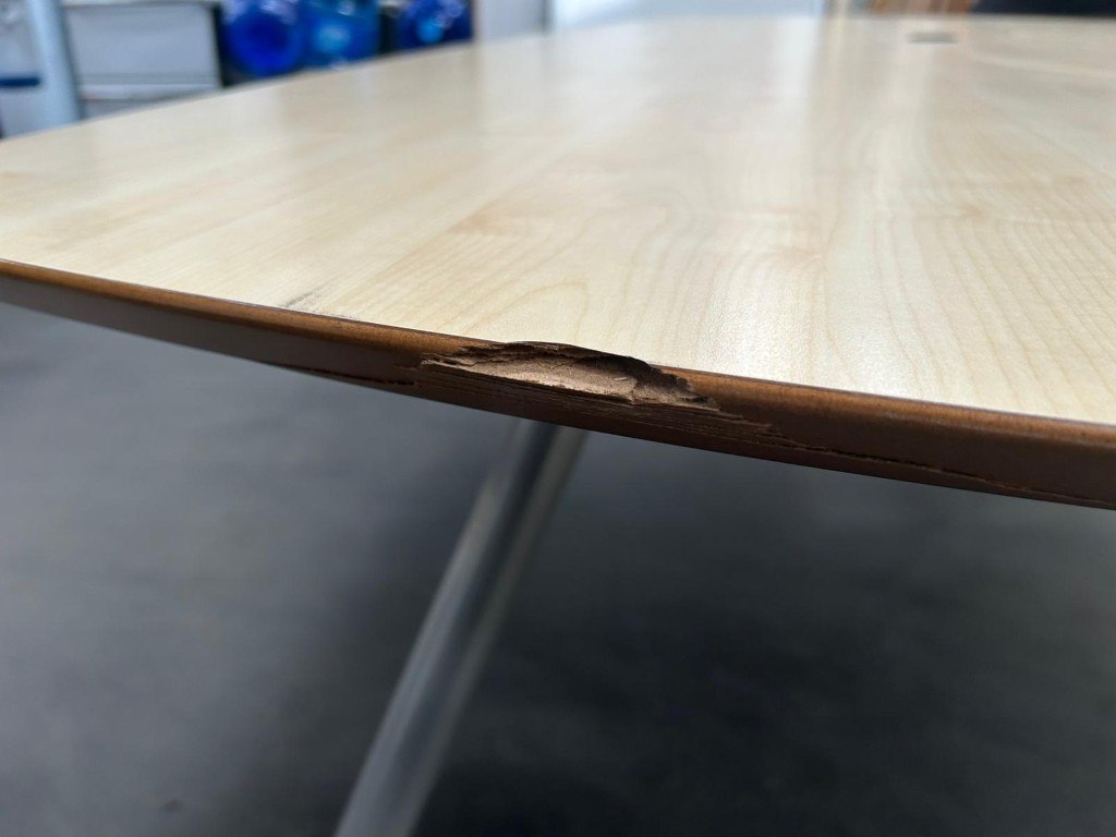 1x Q-BIC Vergadertafel B260xD130 x H74 - Hout/Metaal, met enkele gebruikssporen, zichtbare schade op randen