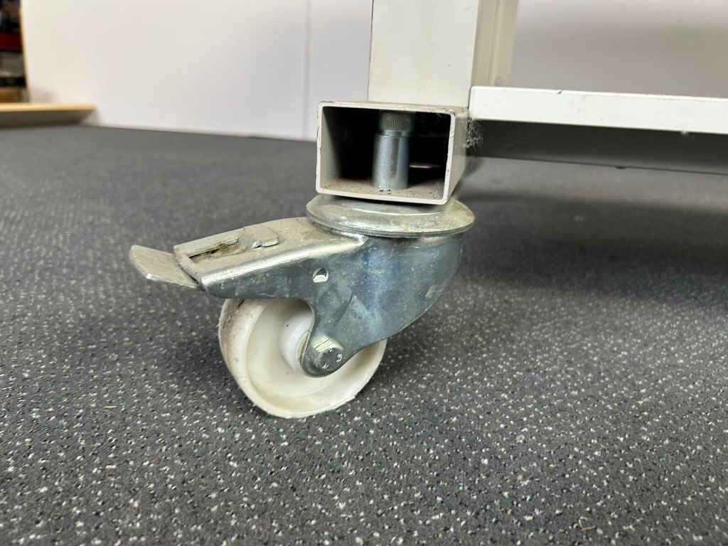 B155-185xD75 - Grijs/Melamine/Wit Metaal, met opvallende schade en gebruikssporen